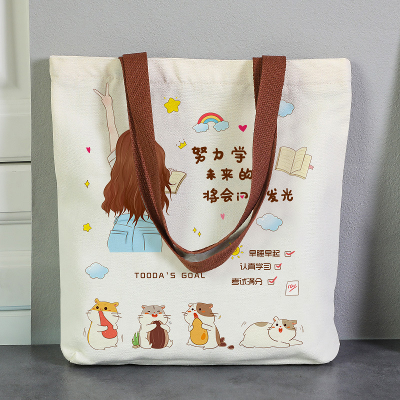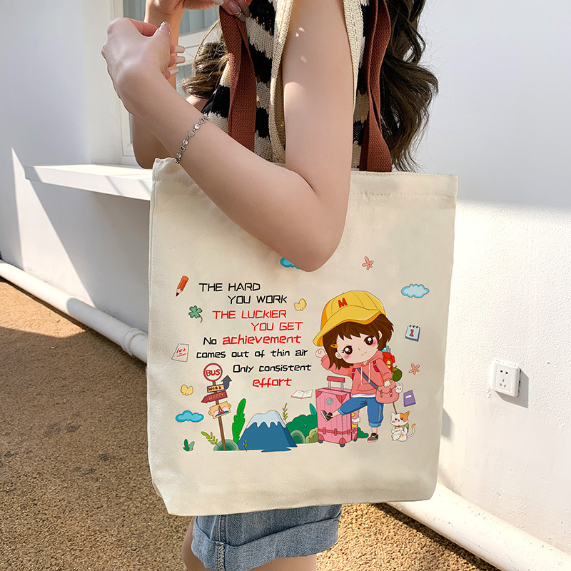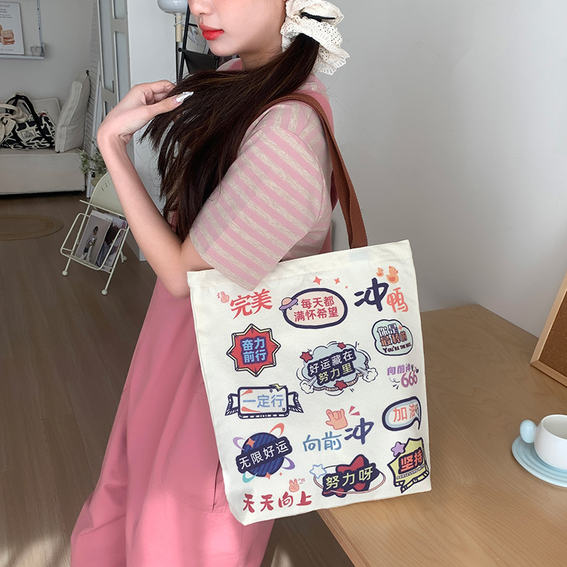 캔버스 가방 여성 2025 새로운 학생 메이크업 가방 핸드백 간단한 대용량 숄더백 도매스토어 가기
