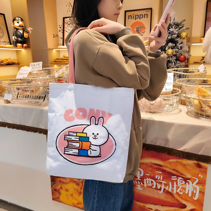 캔버스 가방 여성 2025 새로운 학생 메이크업 가방 핸드백 간단한 대용량 숄더백 도매