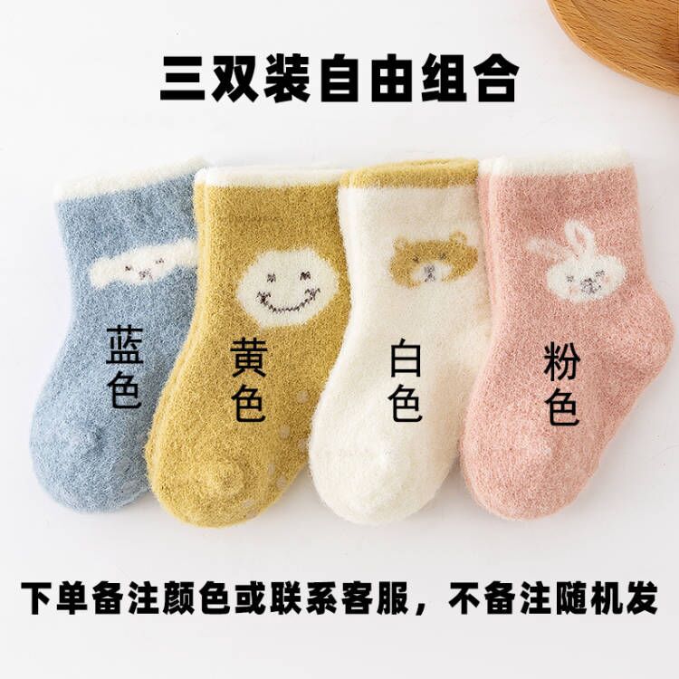 22 새로운 가을과 겨울 밍크 벨벳 원사 두꺼운 아기 양말 미끄럼 방지 분배 튜브 아기 바닥 양말 신생아 양말스토어 가기
