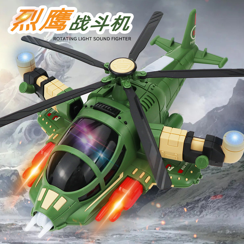 소리와 가벼운 유니버설 휠로 같은 아이들의 전기 회전 변형 형태 전투기 장난감 야시장을 흔들어 라.