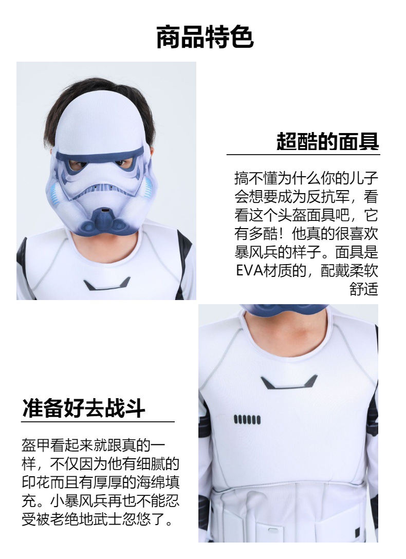 但是如果他穿上我们这套经典的暴风兵的装扮,他就会把帝国的东西都抛在脑后了。