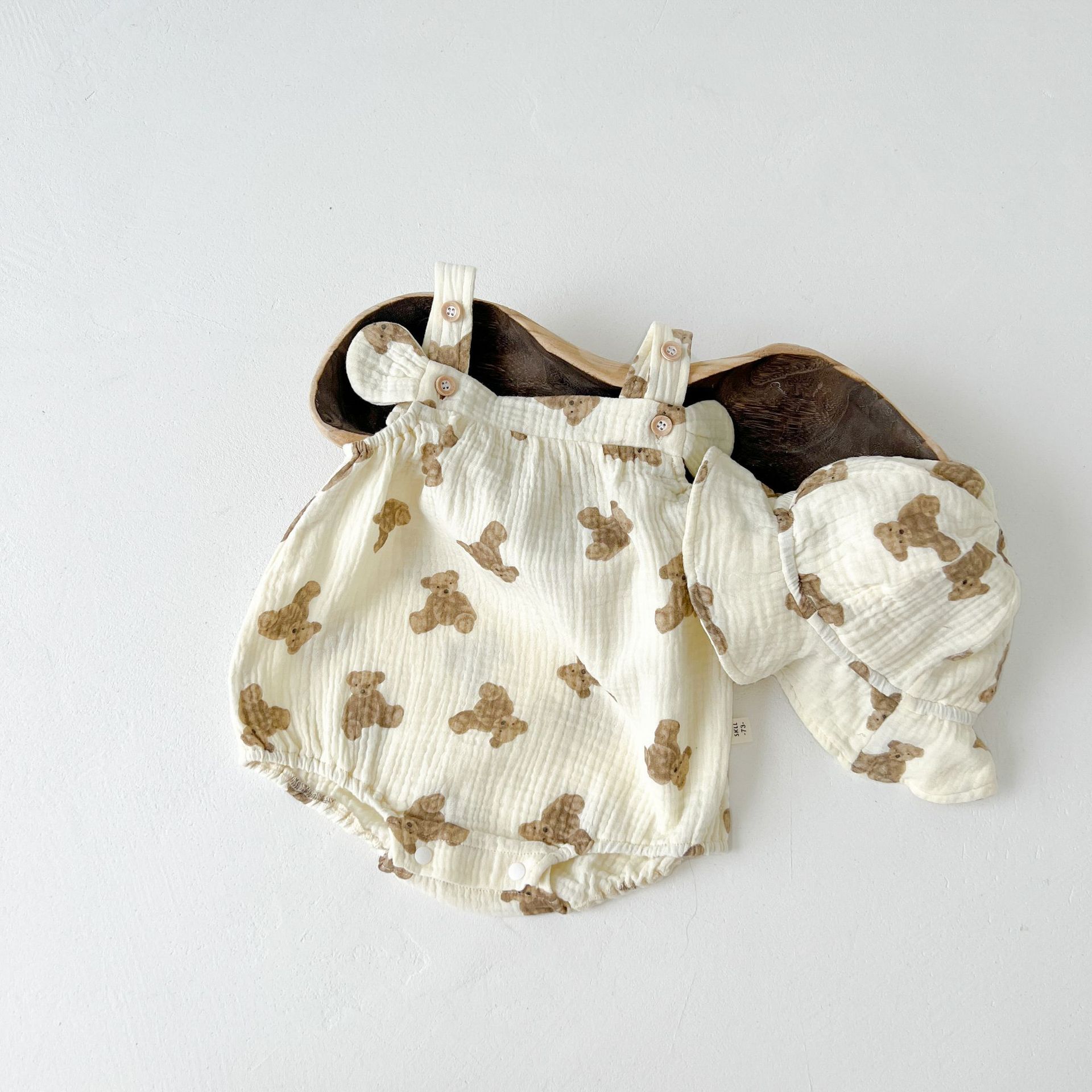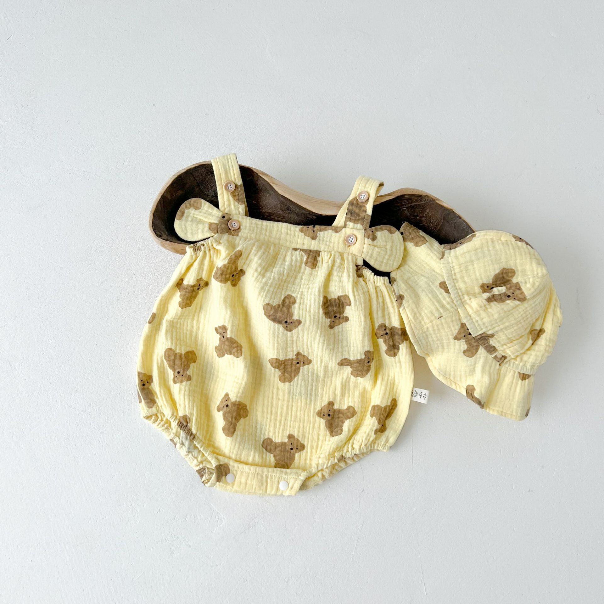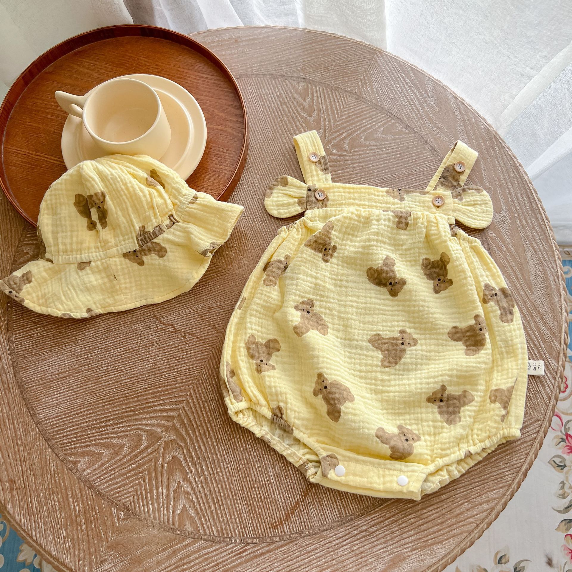 여름 새 스타일 가방 방귀 옷 어린이 정장 만화 민소매 아기 장난 꾸러기 모자 유아 점프 슈트 정장스토어 가기