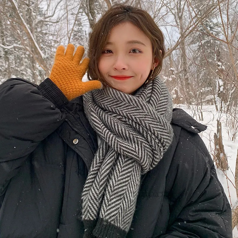 새로운 체크무늬 스카프 가을 겨울 한국 스타일 분위기 있는 모조 캐시미어 스카프 여성용 두꺼운 따뜻한 니트 숄 남성용 패션