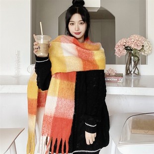 격자 무늬 스카프 여자 겨울 최고급 가을과 겨울 새로운 캐시미어 두꺼운 따뜻한 숄 올매치 니트 스카프스토어 가기