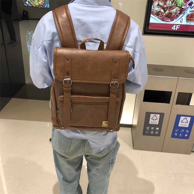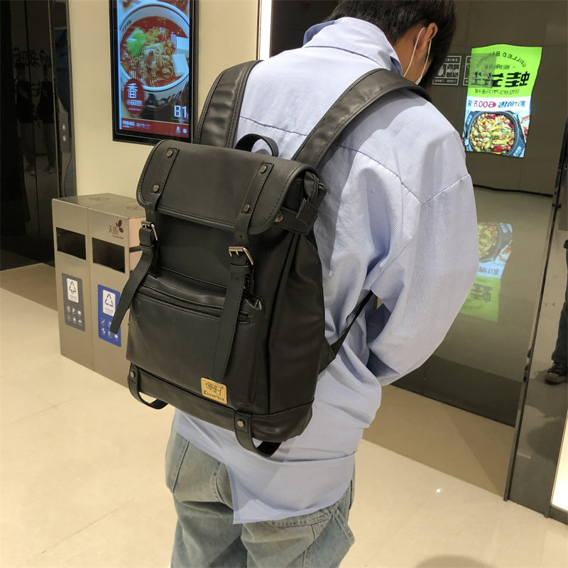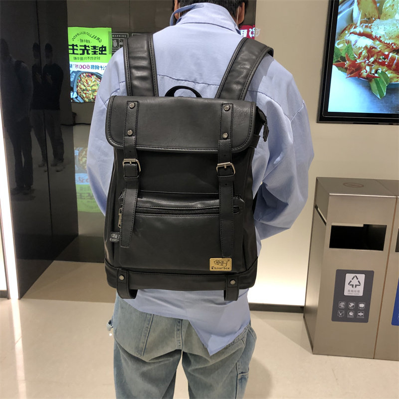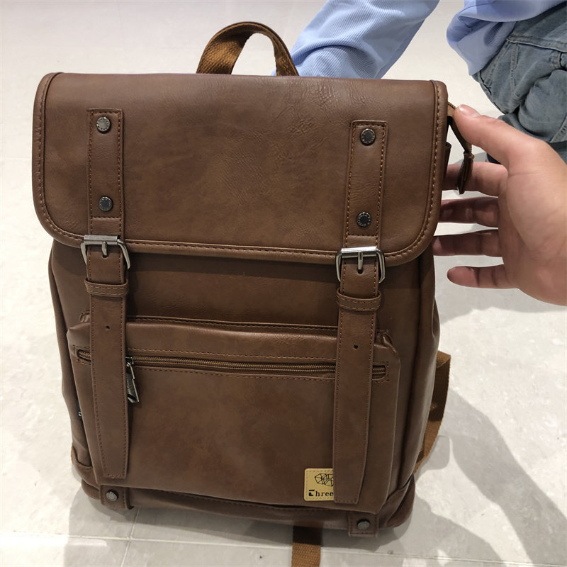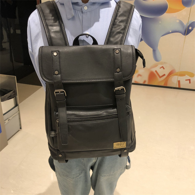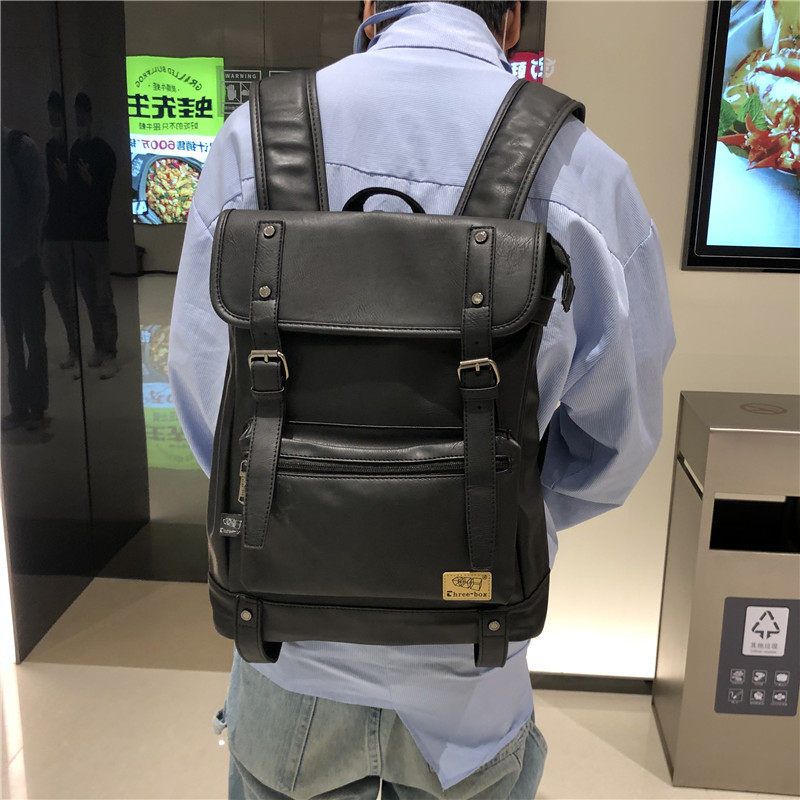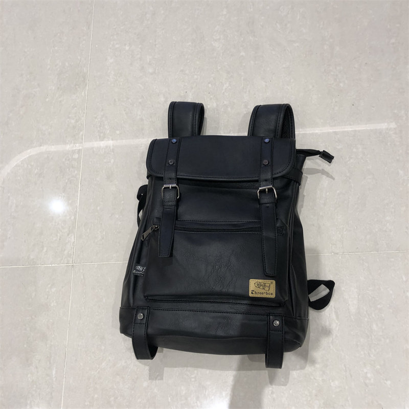 쓰리 박스 일본과 한국 스타일 트렌디 남성 배낭 캐주얼 PU 대용량 배낭 남성 학생용 캠퍼스 책가방스토어 가기