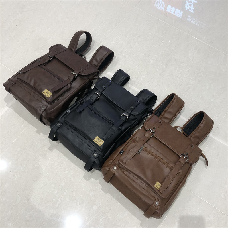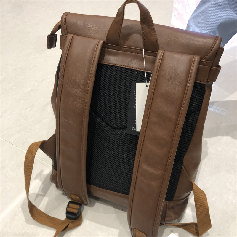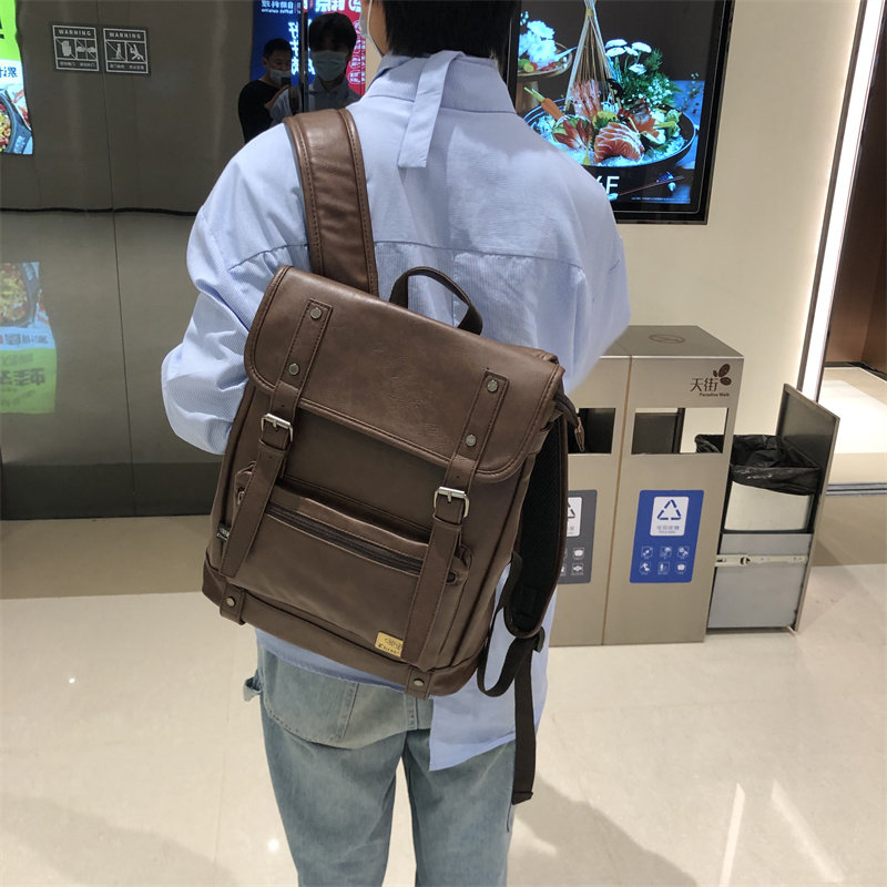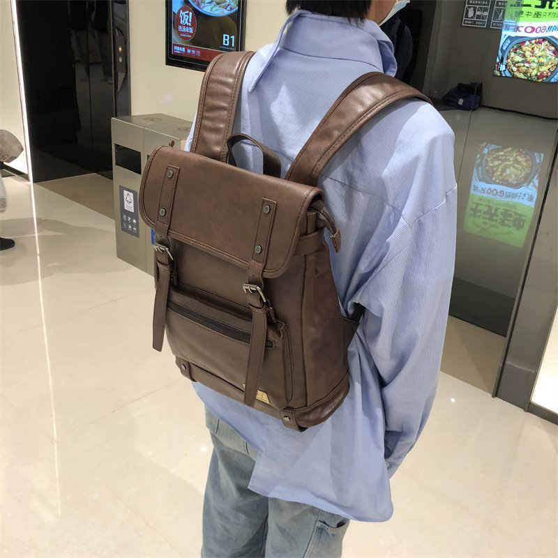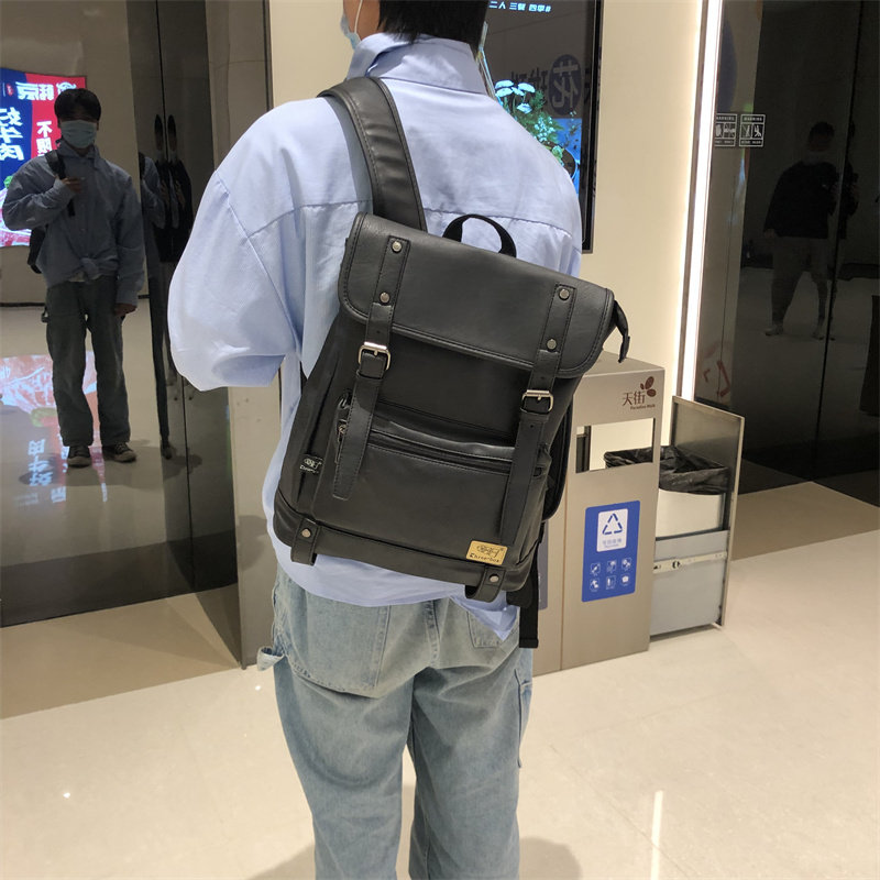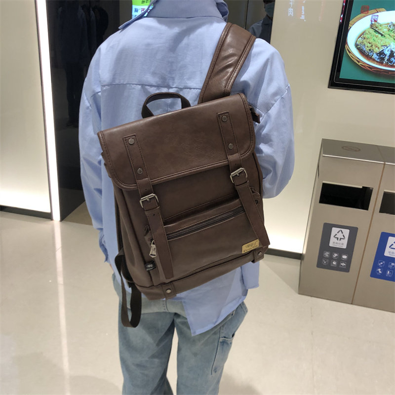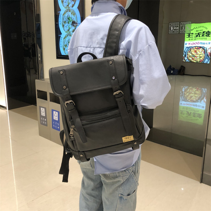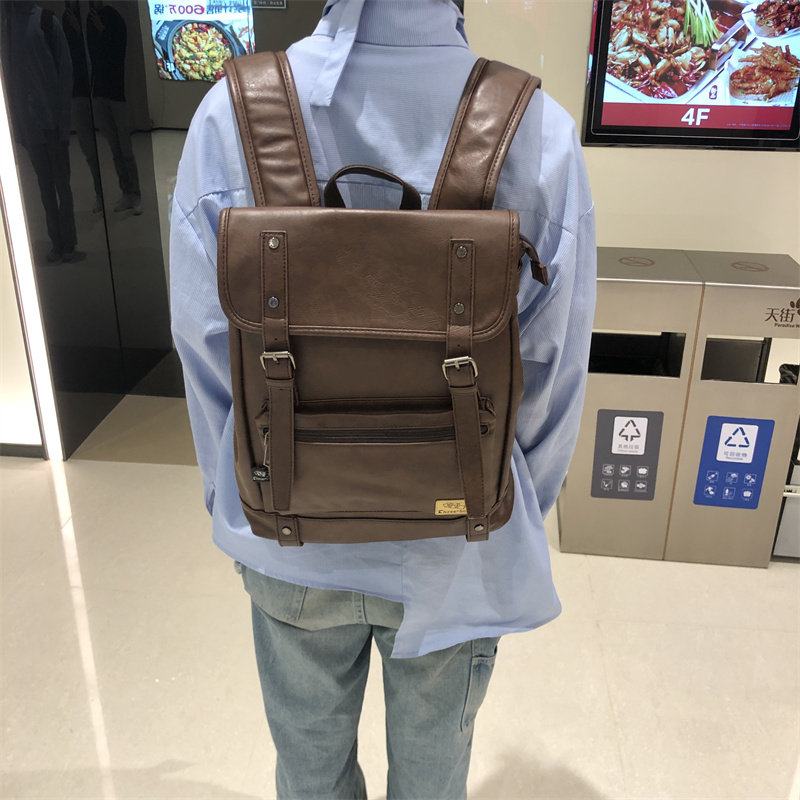 쓰리 박스 일본과 한국 스타일 트렌디 남성 배낭 캐주얼 PU 대용량 배낭 남성 학생용 캠퍼스 책가방스토어 가기