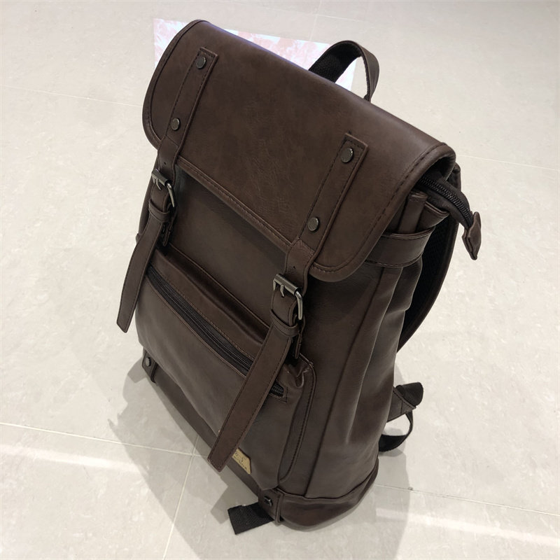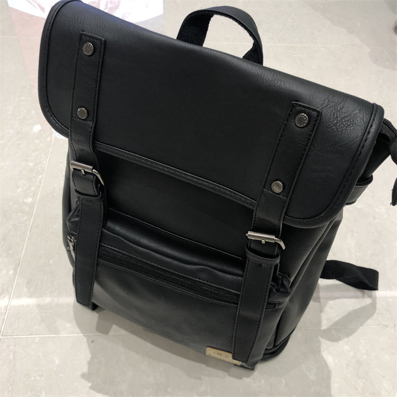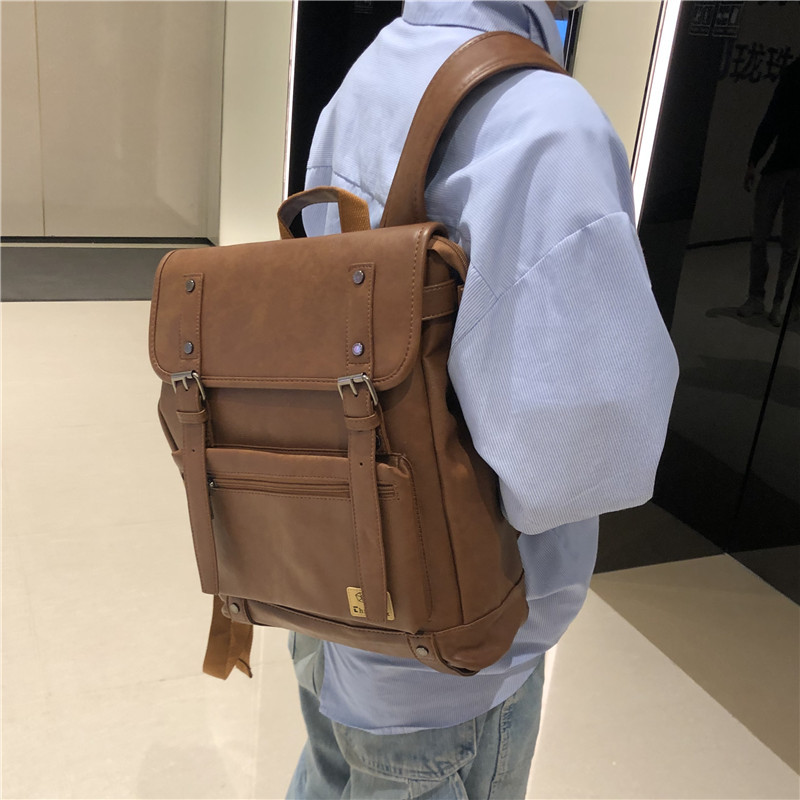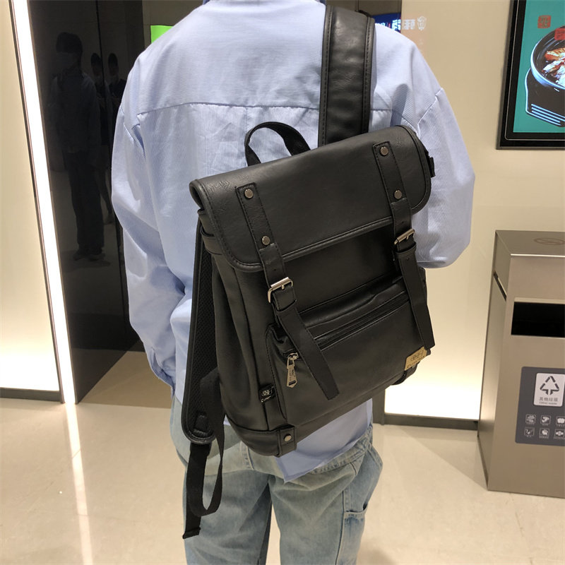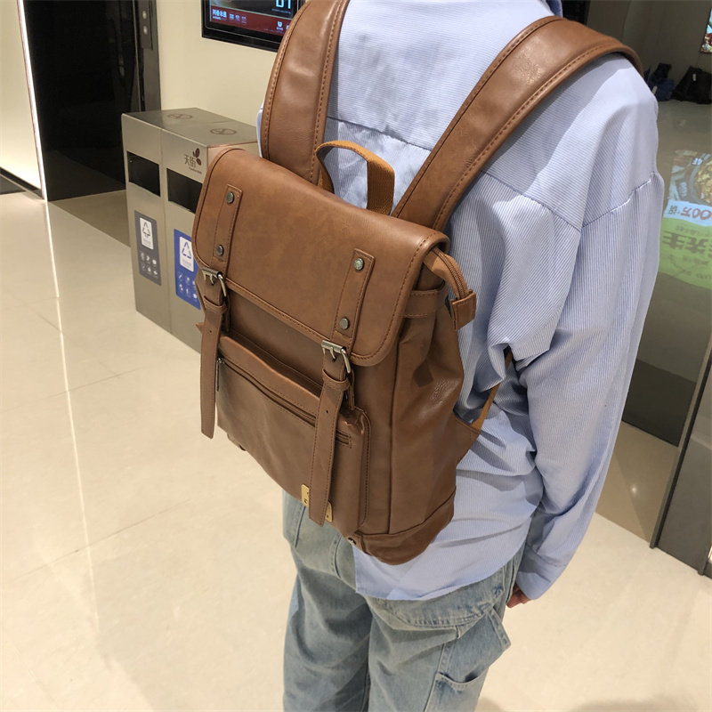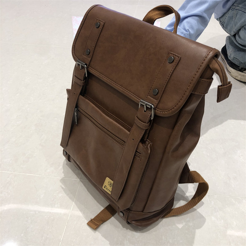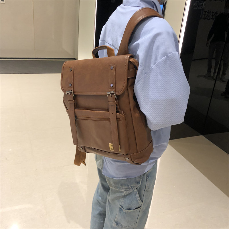 쓰리 박스 일본과 한국 스타일 트렌디 남성 배낭 캐주얼 PU 대용량 배낭 남성 학생용 캠퍼스 책가방스토어 가기