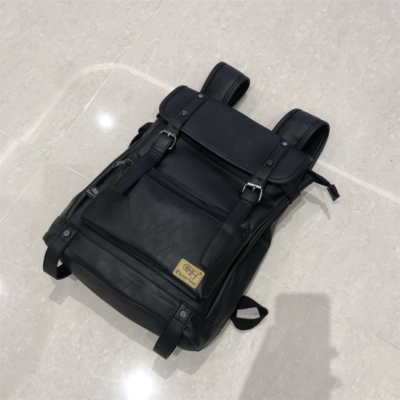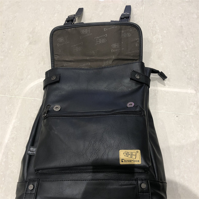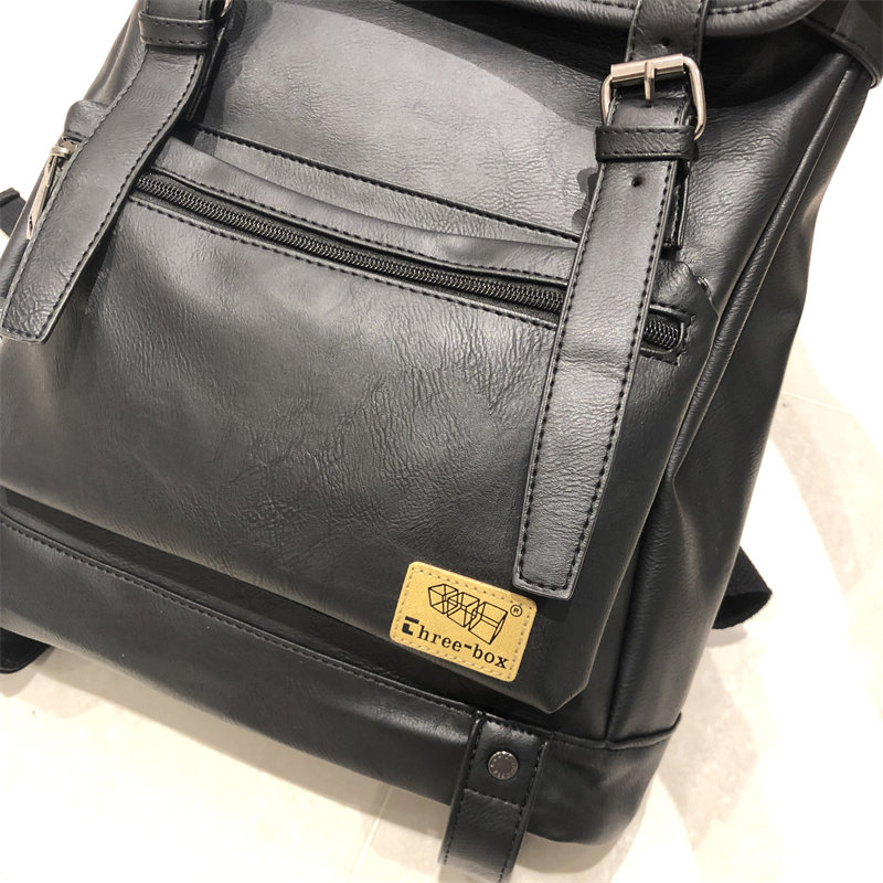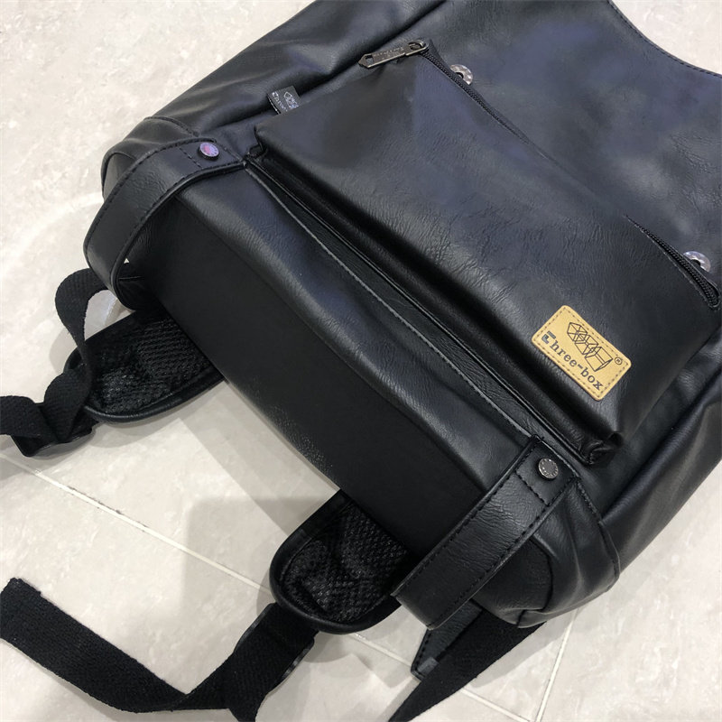 쓰리 박스 일본과 한국 스타일 트렌디 남성 배낭 캐주얼 PU 대용량 배낭 남성 학생용 캠퍼스 책가방