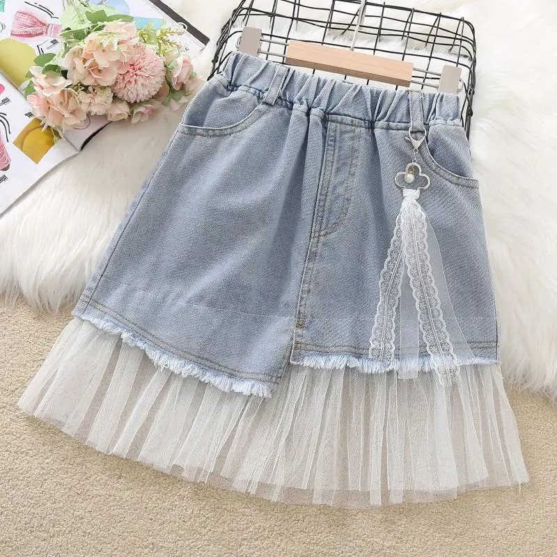 2024 여아 데님 스커트 봄 여름 메쉬 스커트 스타일리시한 어린 소녀 짧은 스커트 단색 아동 스커트 트렌디스토어 가기
