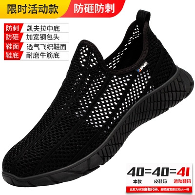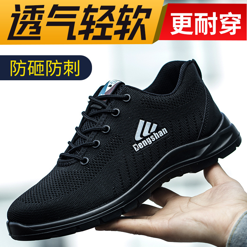 안전 신발 안티 스매싱 안티 피어싱 남성용 여름 통기성 탈취제 강철 발가락 경량 부드러운 바닥 미끄럼 방지 보호 작업 신발스토어 가기