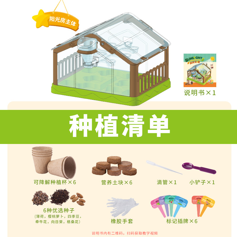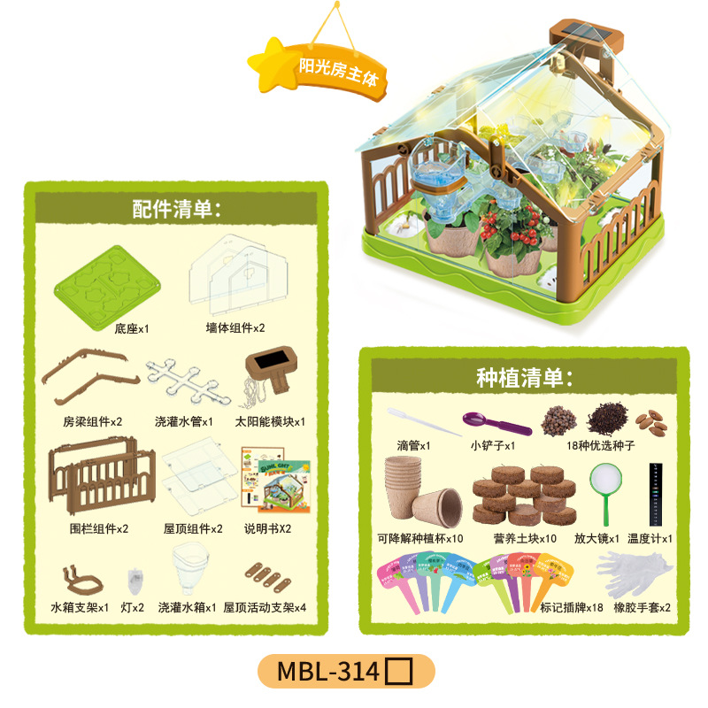미니 심기 태양 방 DIY 어린이 아침과 저녁 관찰 하우스 씨앗 발아 성장 과학 실험 장난감 세트