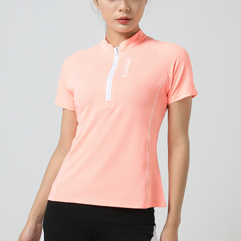 여름 반팔 티셔츠 여성용 신상 슬림핏 골프 야구 유니폼 스탠드 칼라 지퍼 캐주얼 러닝 스포츠 상의스토어 가기