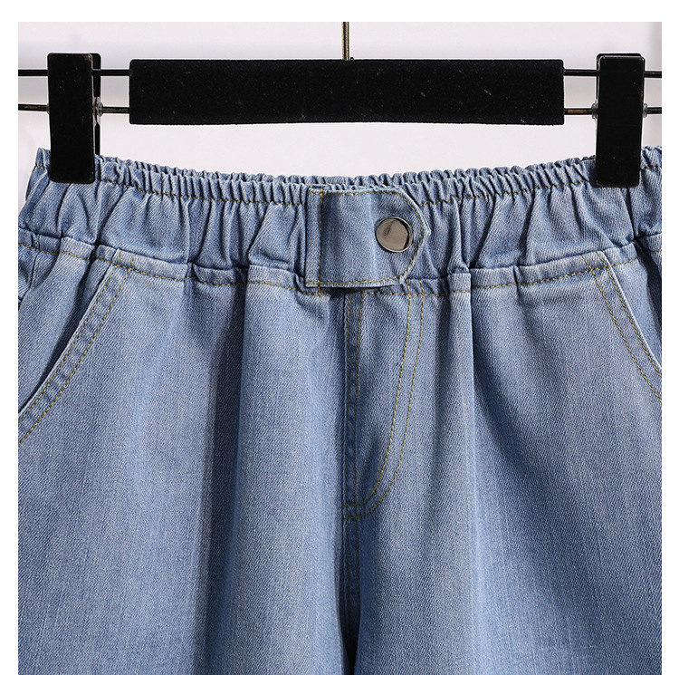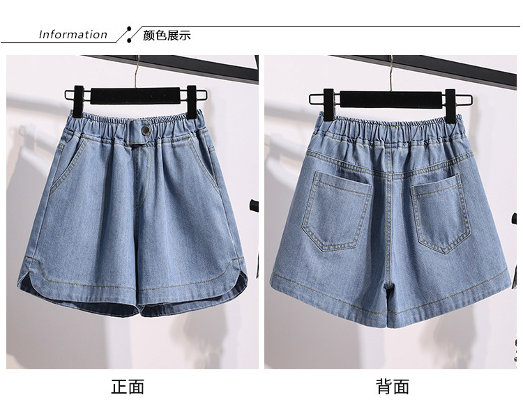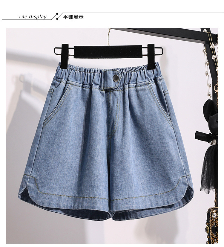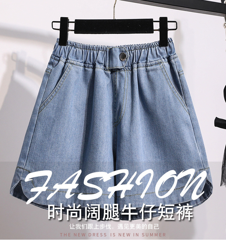 한국 1688 여름 느슨한 넓은 다리 핫팬츠 지방 MM 플러스 지방 플러스 사이즈 하이 웨이스트 데님 반바지 여성 여성 소스토어 가기