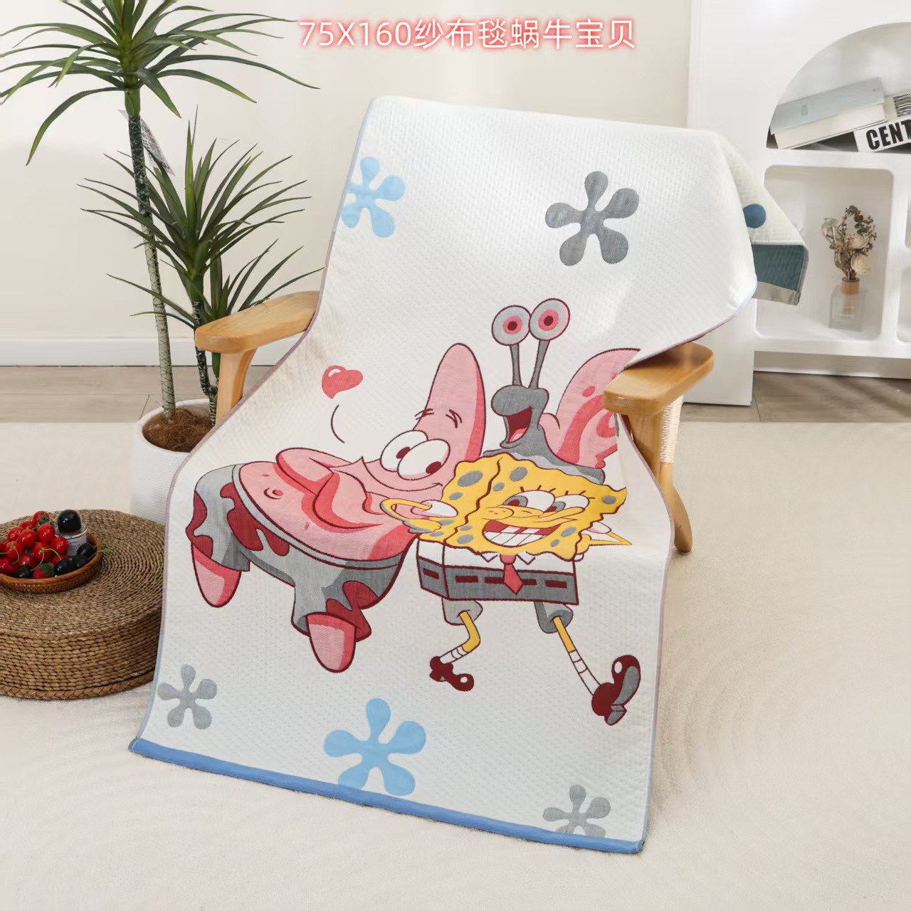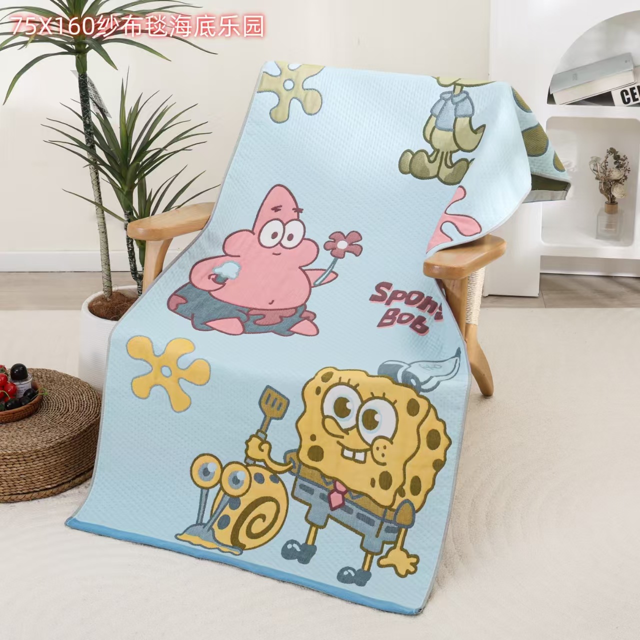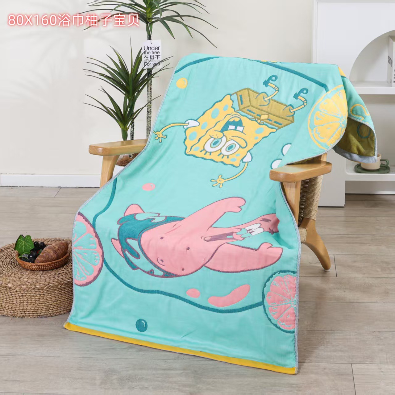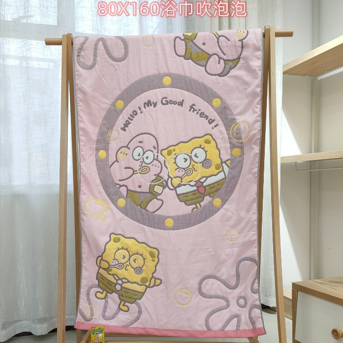새로운 스폰지 밥 순면 거즈 가정용 두꺼운 클래스 A 엄마와 아기 만화 대형 목욕 타월 부드럽고 피부 친화적인 배송스토어 가기