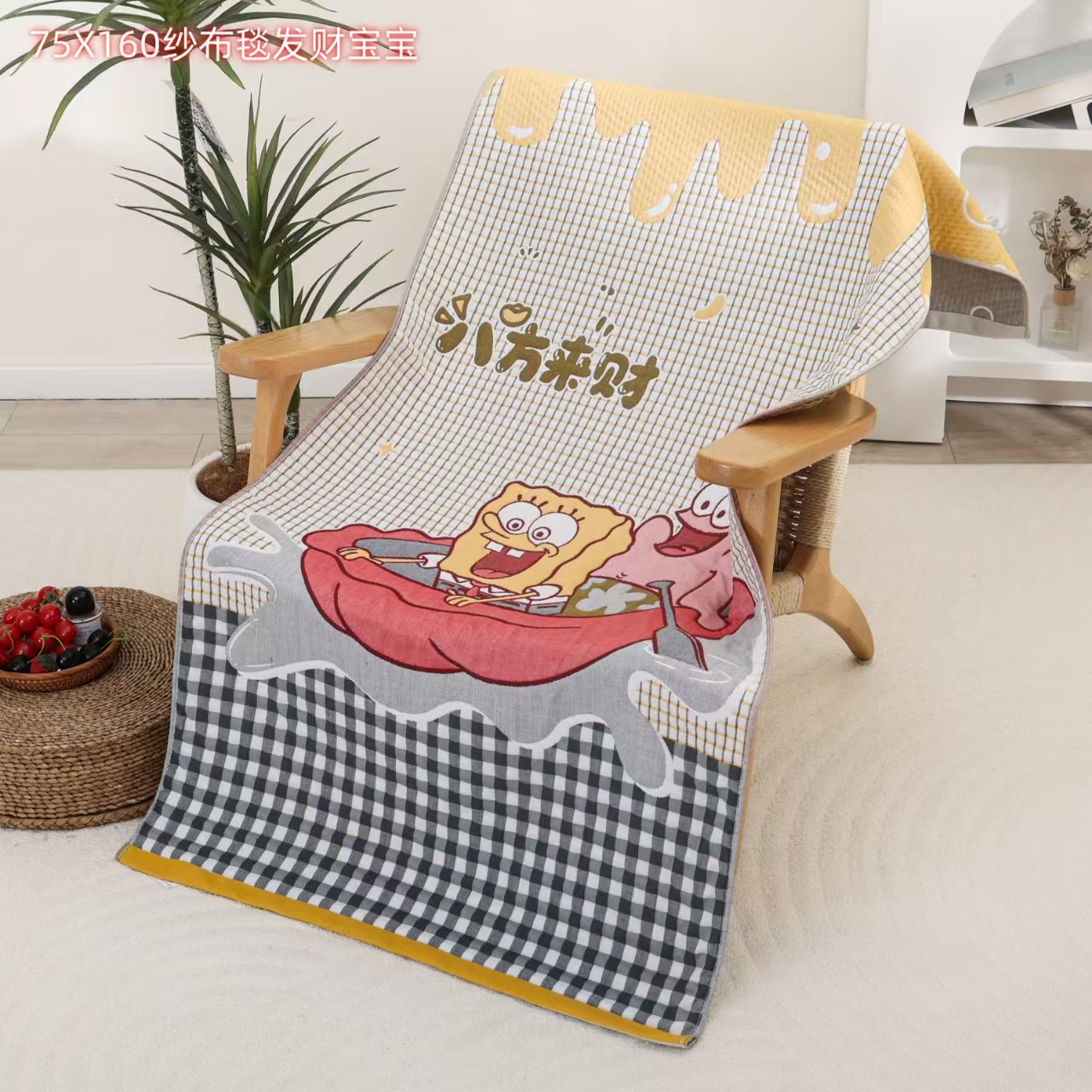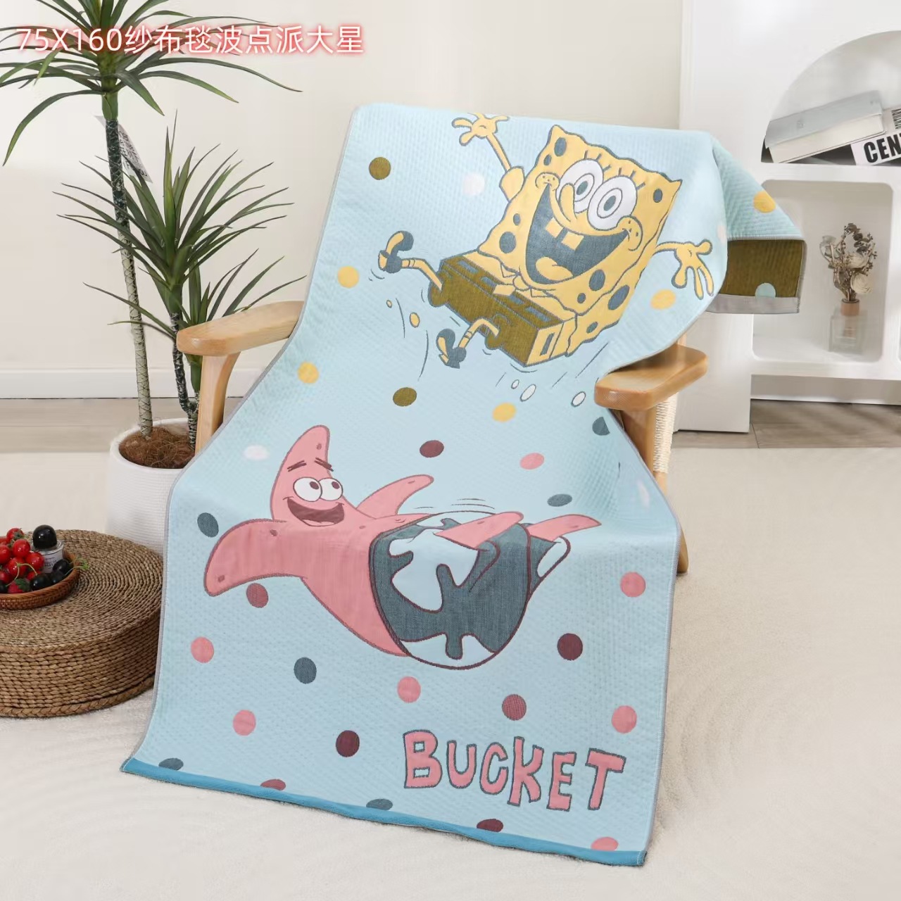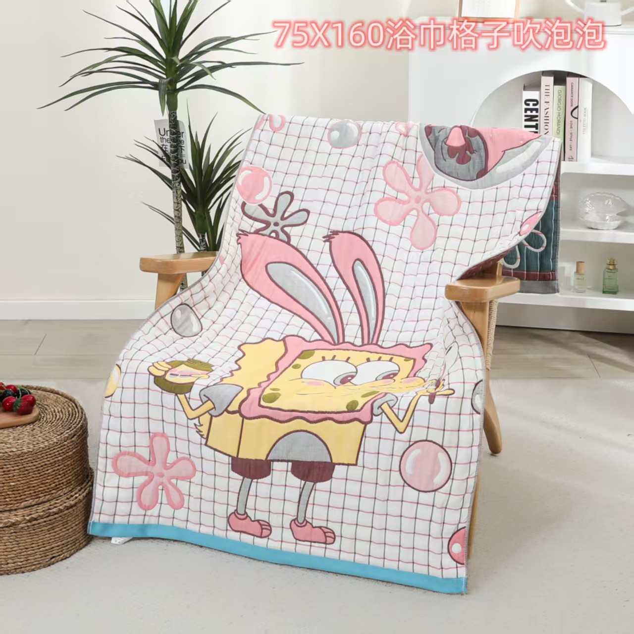 새로운 스폰지 밥 순면 거즈 가정용 두꺼운 클래스 A 엄마와 아기 만화 대형 목욕 타월 부드럽고 피부 친화적인 배송스토어 가기