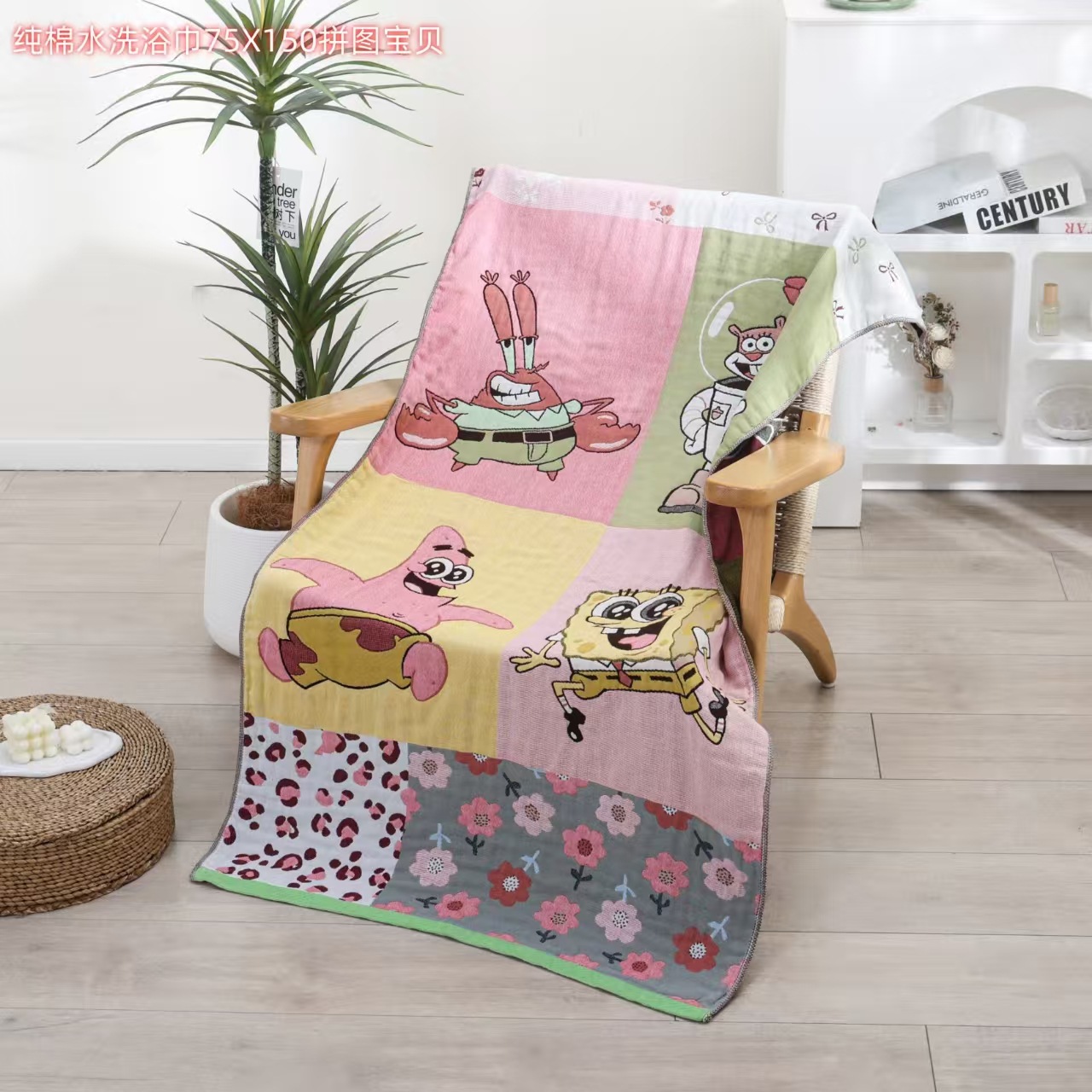 새로운 스폰지 밥 순면 거즈 가정용 두꺼운 클래스 A 엄마와 아기 만화 대형 목욕 타월 부드럽고 피부 친화적인 배송