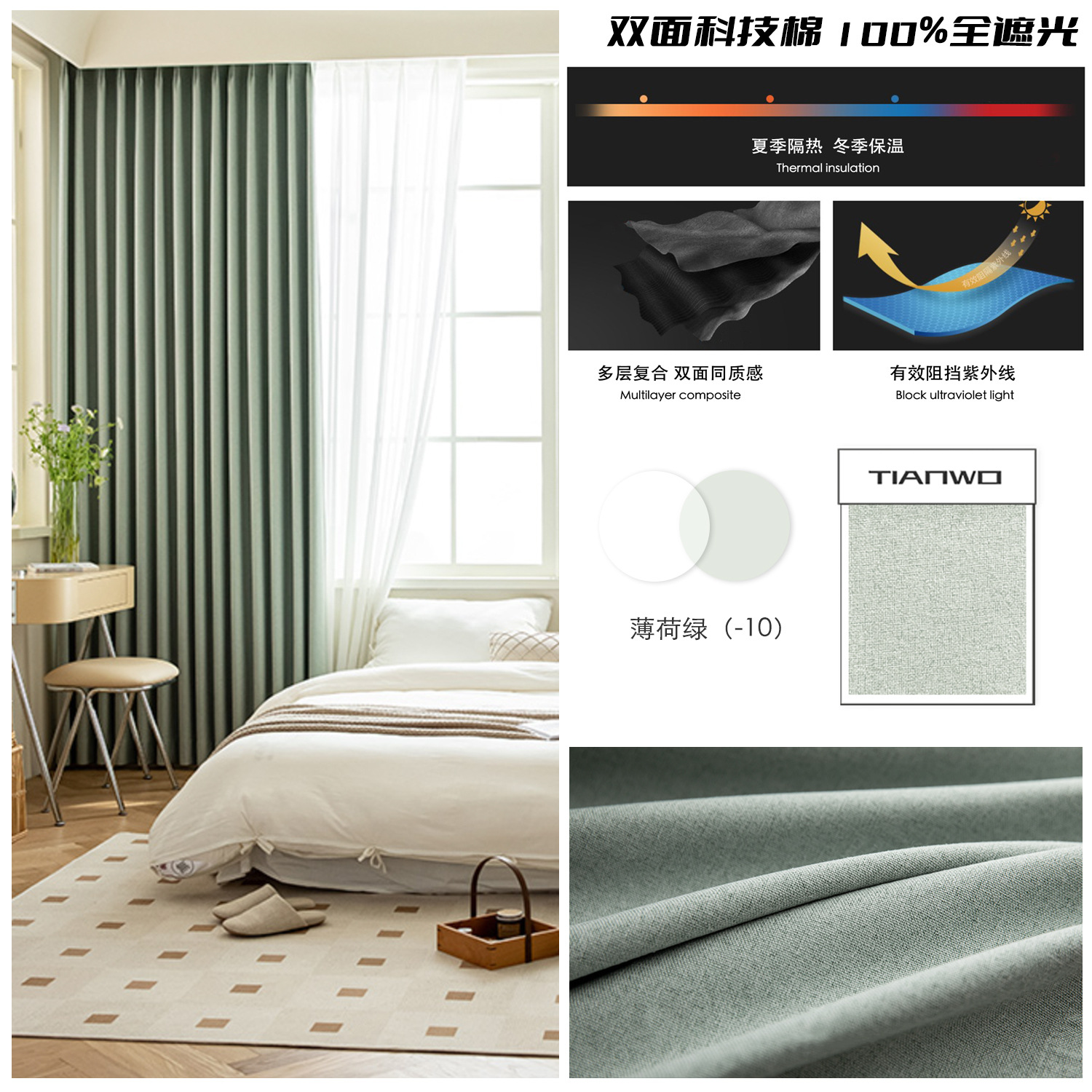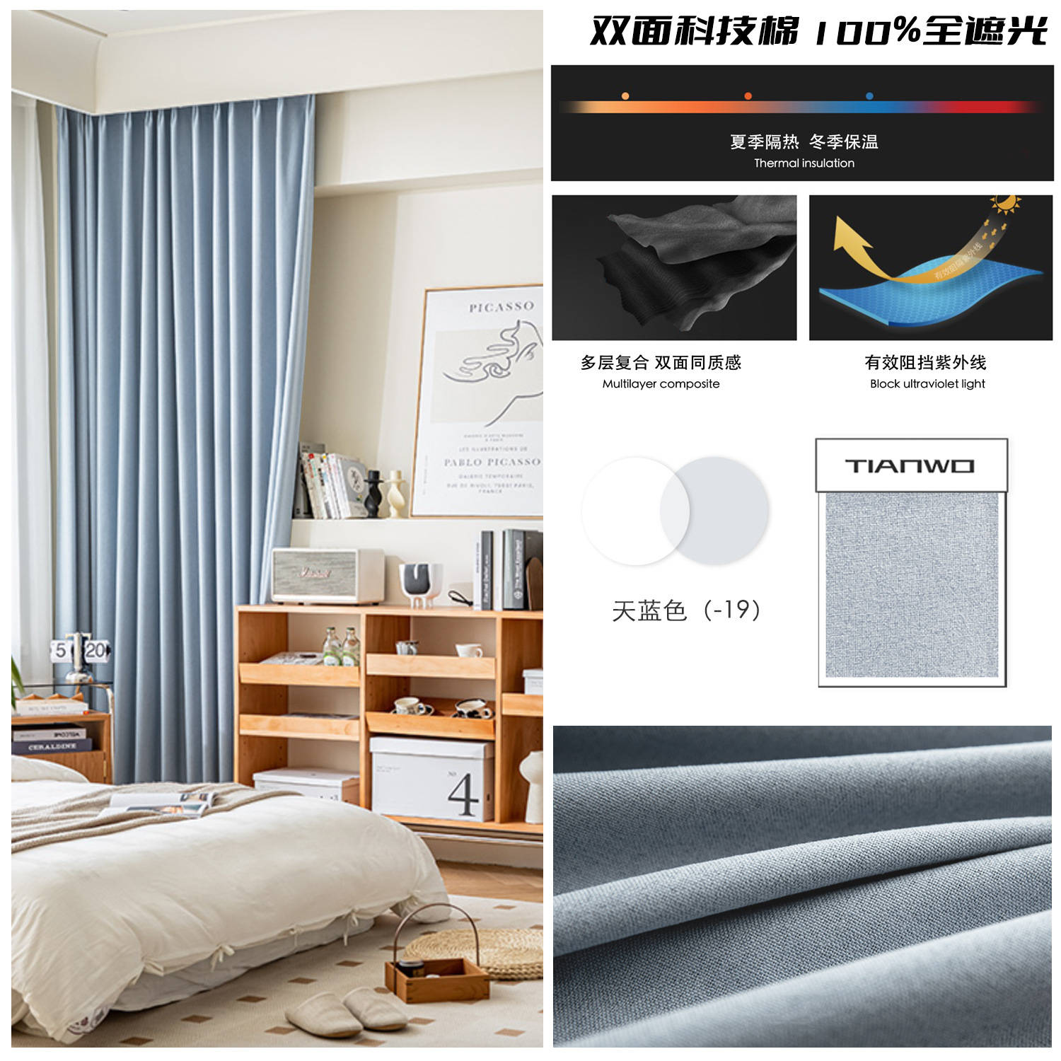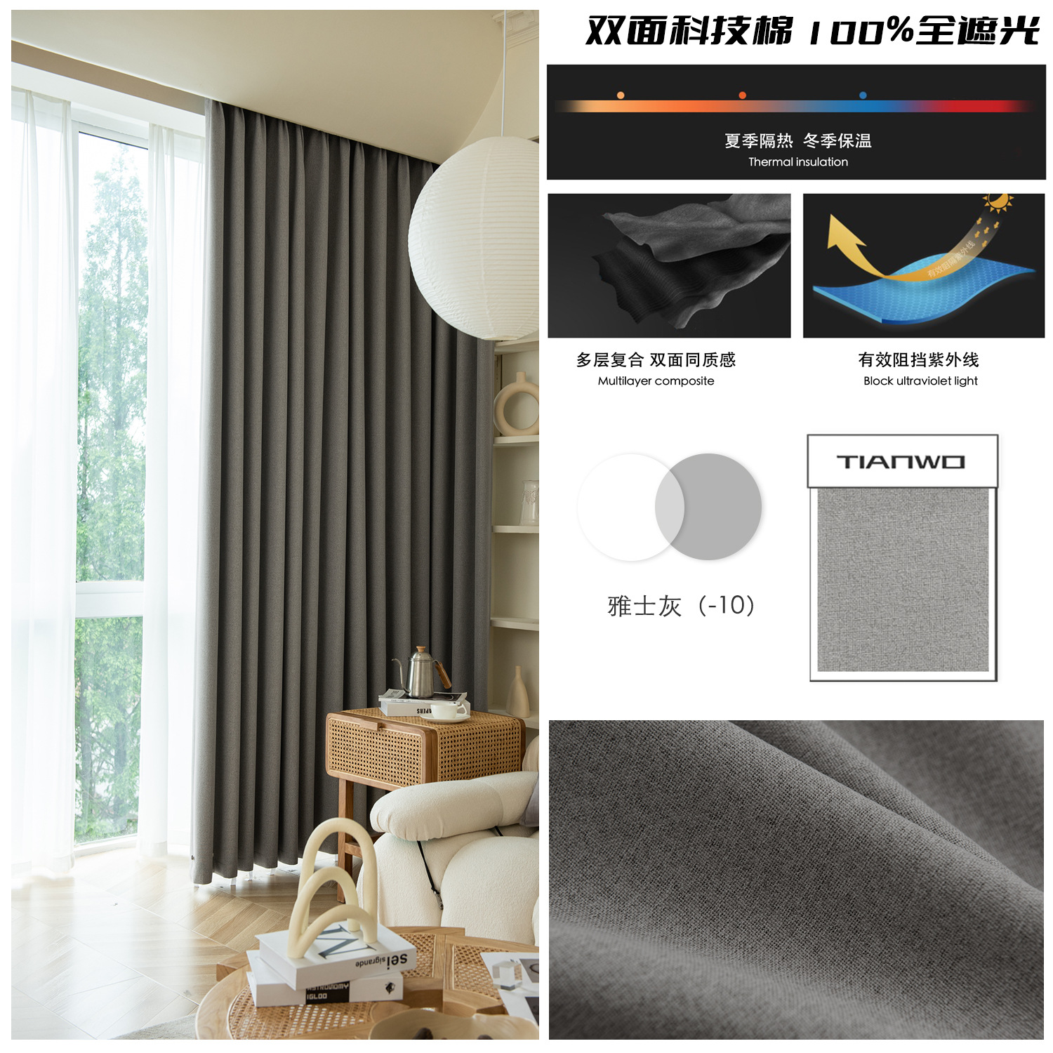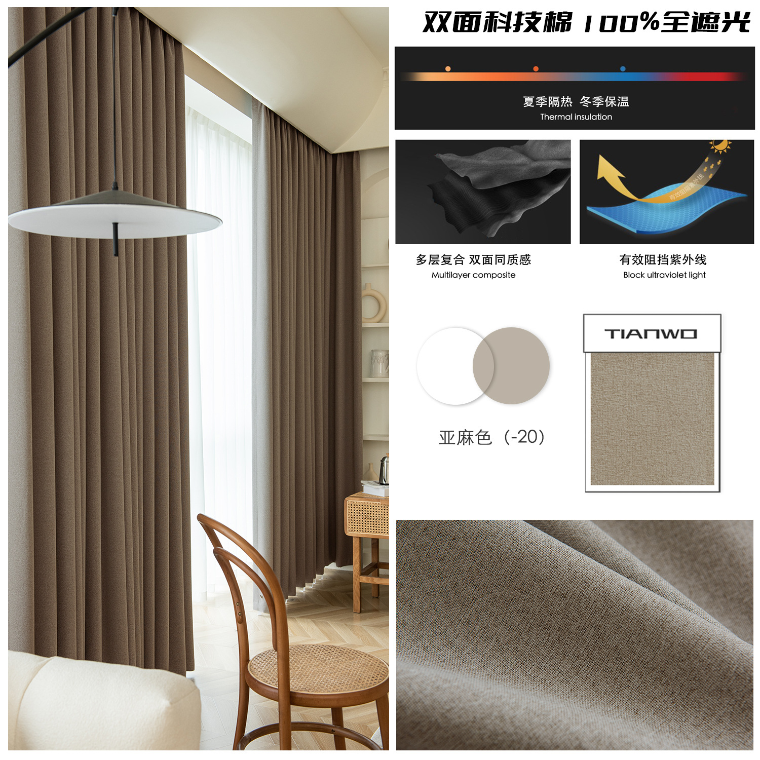 천워【완전 차광 양면 린넨】단열 커튼 면마 커튼 도매 침실 거실 완제품 차양 전실용