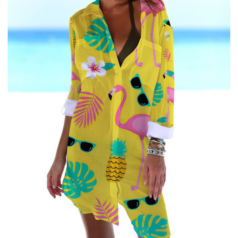 대외 무역 크로스 보더 2022 새로운 비키니 재킷 셔츠 수영복 가디건 여성용 프린트 홀리데이 비치 셔츠