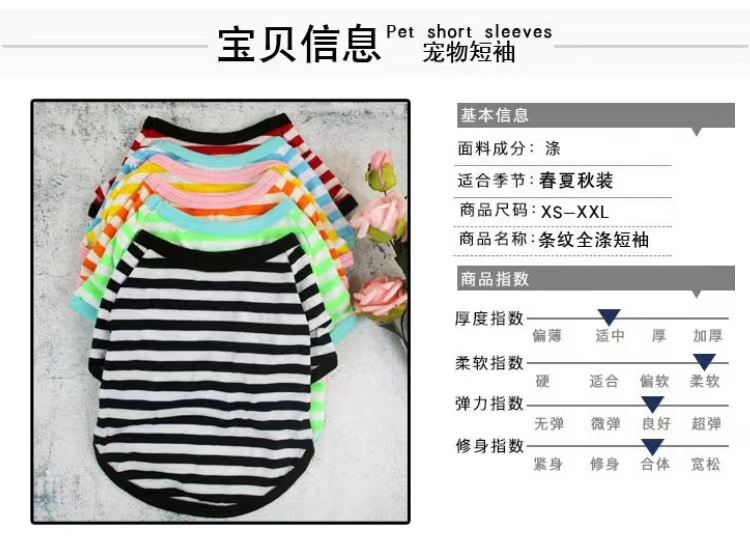 여름 새 개 옷 애완 동물 의류 줄무늬 크루 넥 티셔츠 작은 중간 개 보메이 테디 봄과 여름 얇은스토어 가기