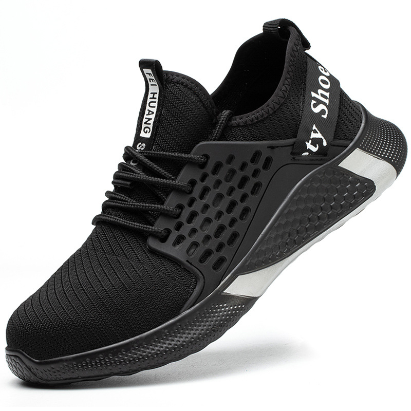 큰 구멍과 조밀 한 메쉬가있는 여름 비행 짠 검은 노동 보호 신발 통기성과 편안한 안전 보호 신발 안티 스매싱 및 안티 피어싱 작업 신발스토어 가기