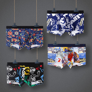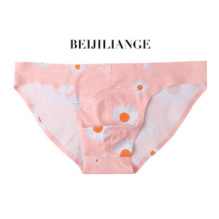남성용 섹시 속옷, 아이스 실크 무봉제 삼각팬티, 개성 프린트 U자형 비키니 남성 팬티스토어 가기