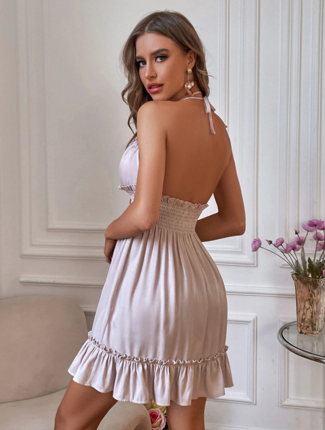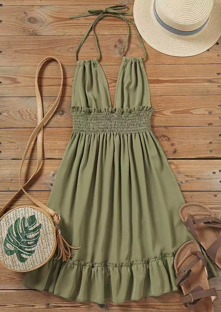 유럽과 미국의 아마존에서 인기 있는 여성 의류, 깊은 V넥 끈이 있는 섹시한 드레스, 비치웨어스토어 가기