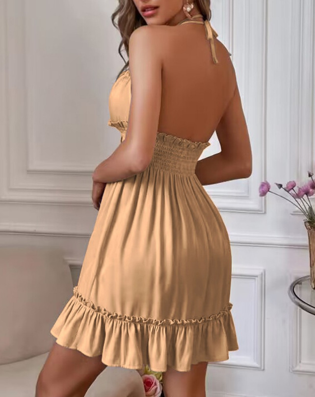 유럽과 미국의 아마존에서 인기 있는 여성 의류, 깊은 V넥 끈이 있는 섹시한 드레스, 비치웨어