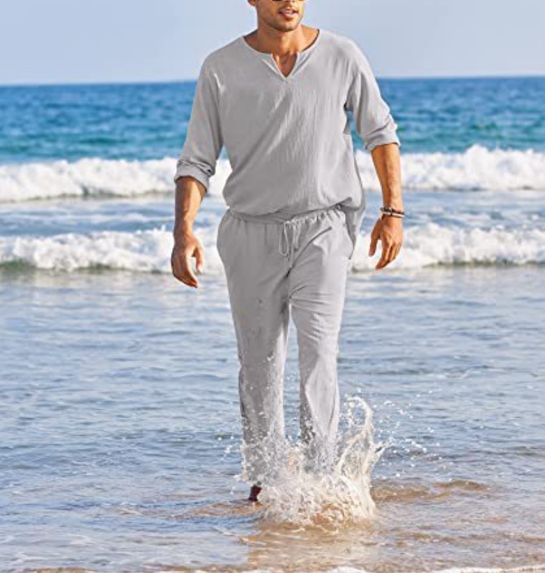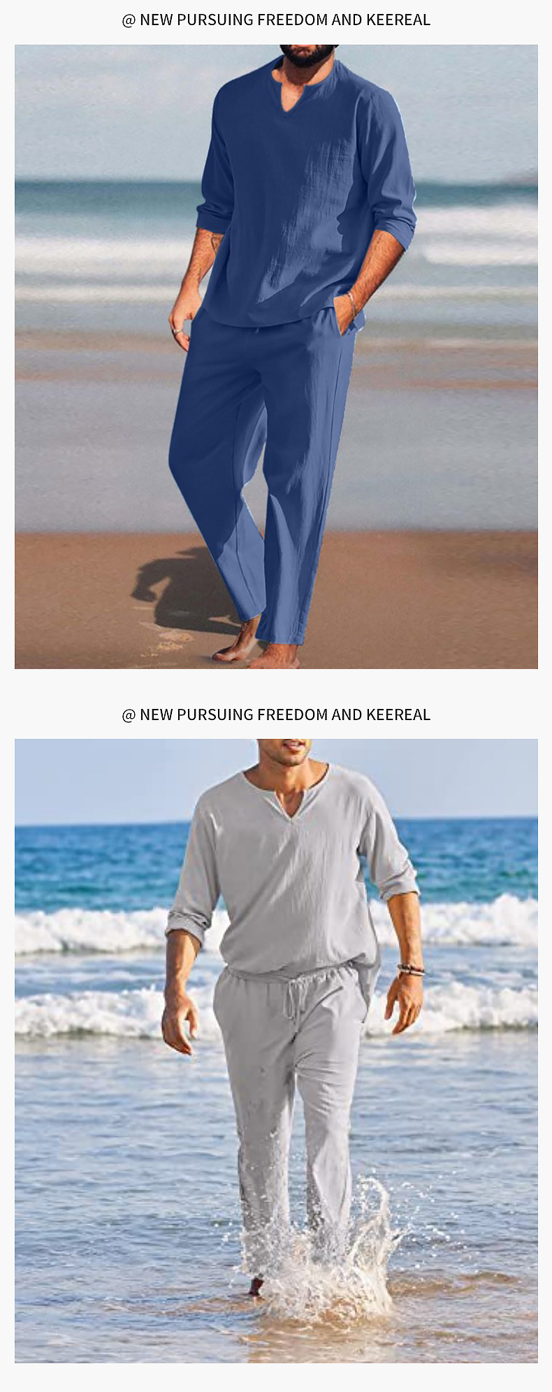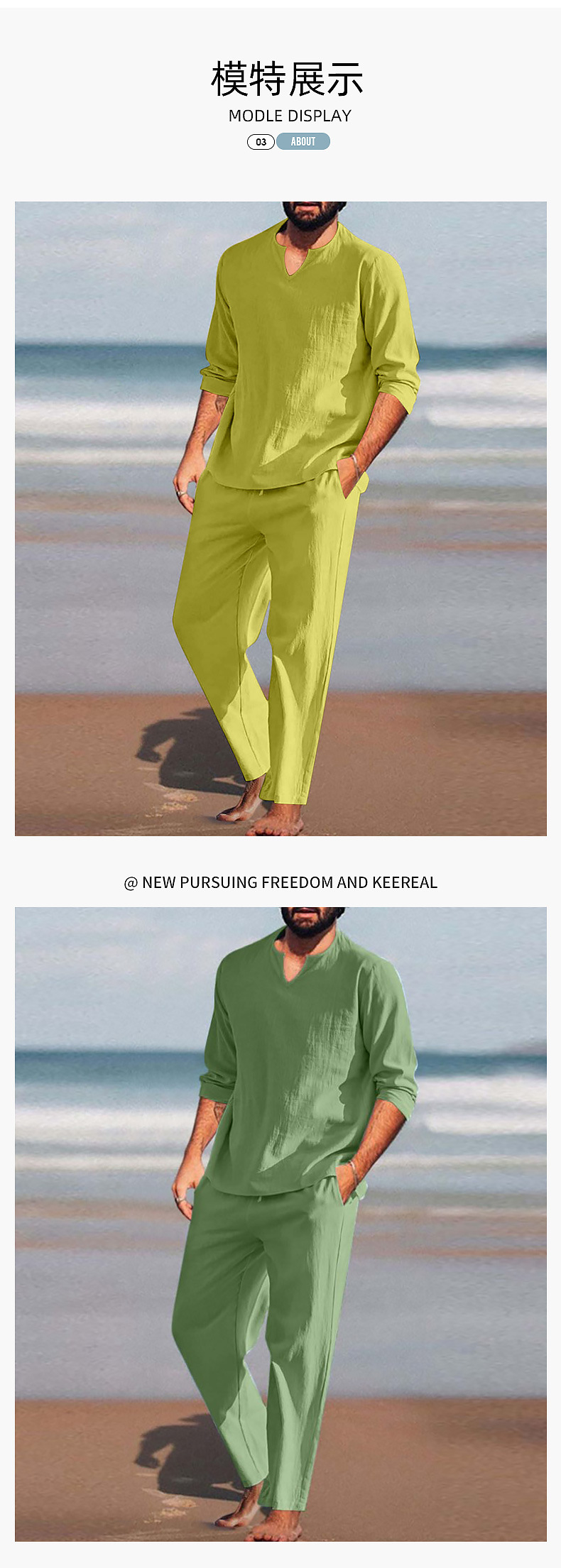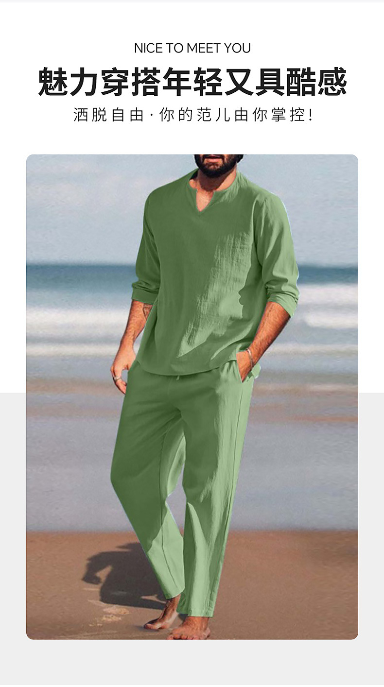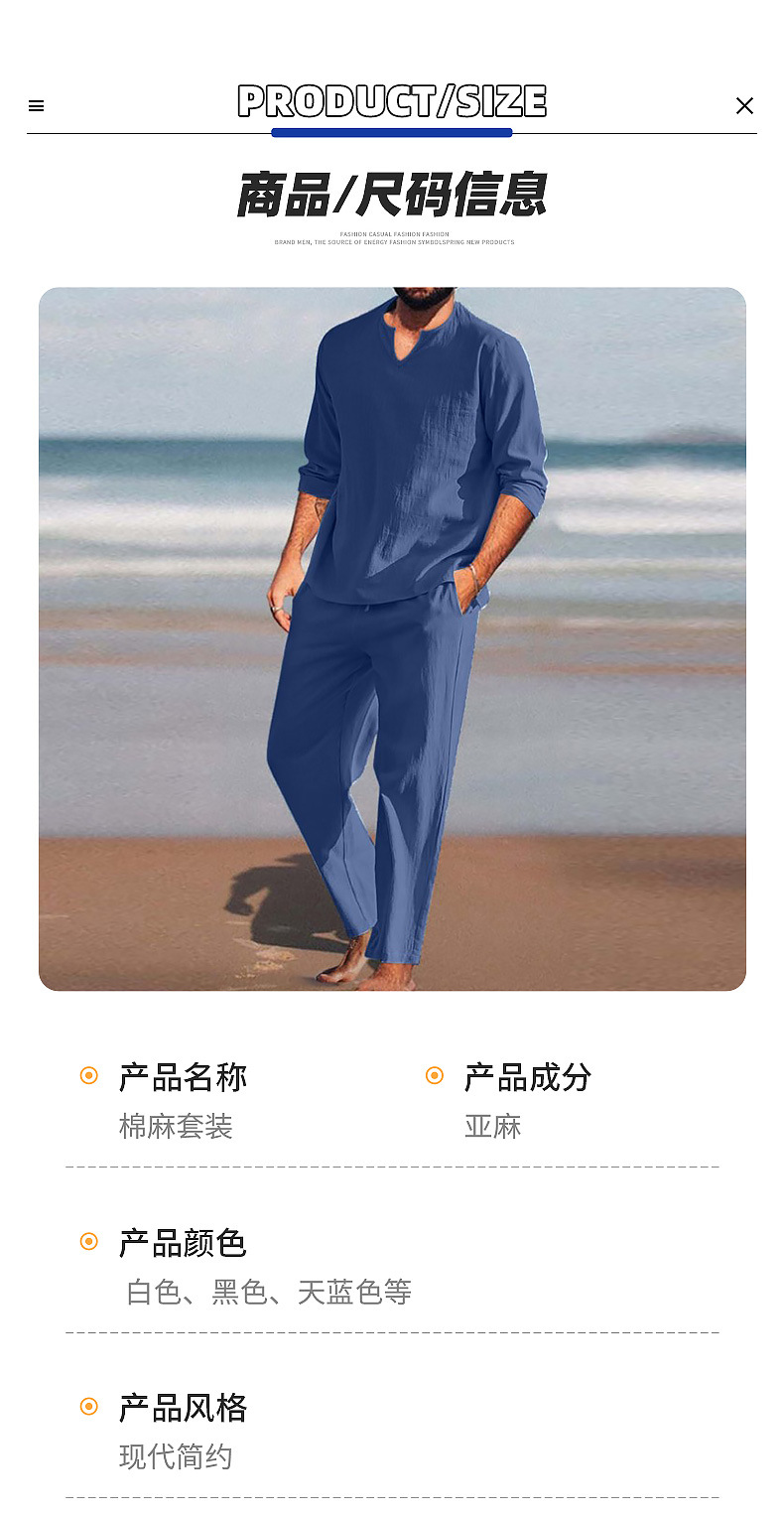 2025 아마존 위시 수출용 남성 캐주얼 단색 포켓 탄성 면마 세트스토어 가기