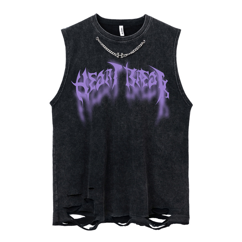 아메리칸 스타일 트렌디 찢어진 조끼 레트로 오래 씻어 웨이슬 민소매 티셔츠 남자의 느슨한 스트레이트 어깨 소매 탑스토어 가기