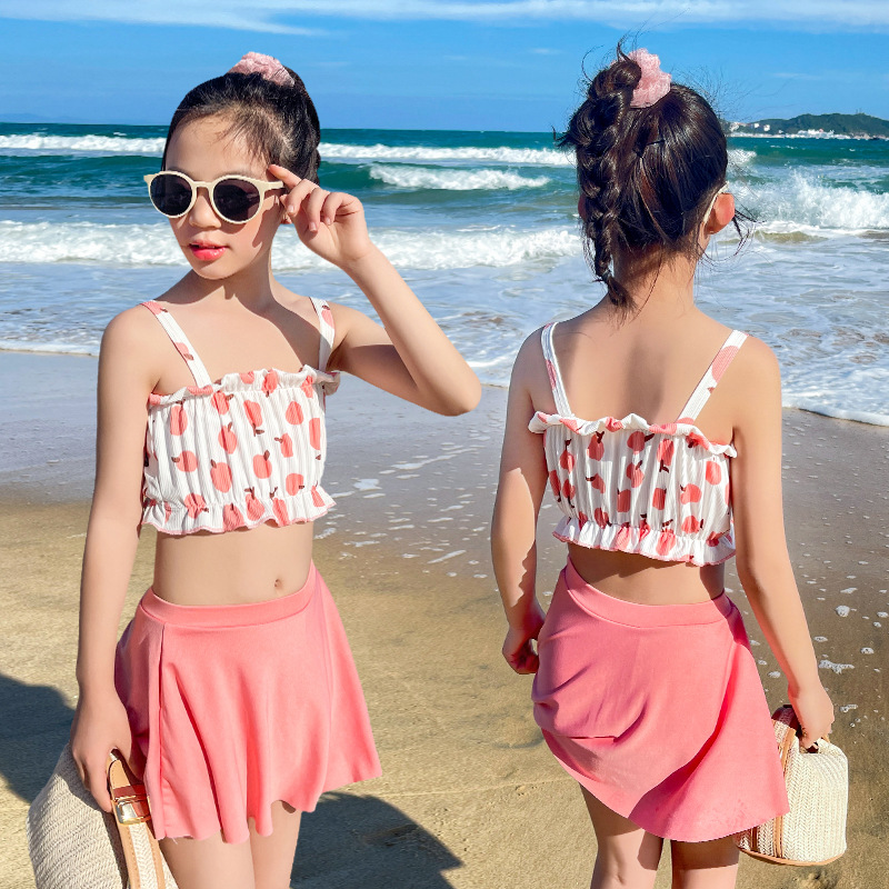 [고급 수영복 50% off 특가] 아동 수영복 여아 스플릿 복서 팬티 스커트 스타일 아동 수영복스토어 가기