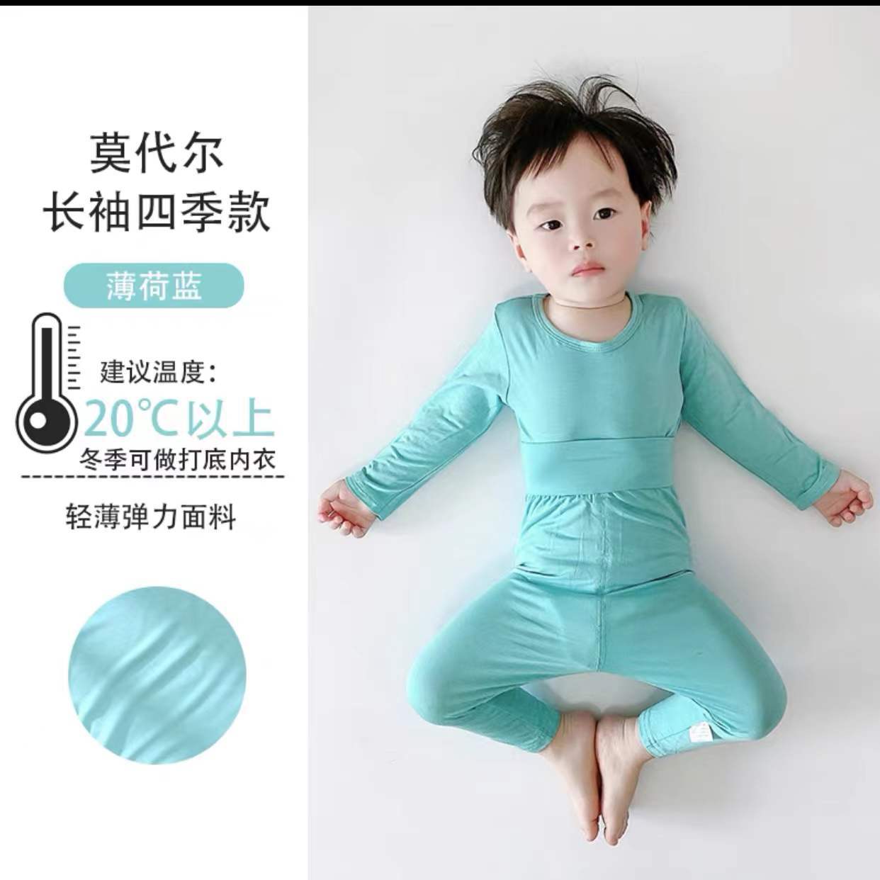 • 민트 블루 모달 긴 소매