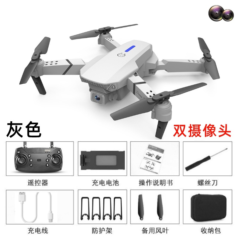 • E88 그레이 + 공기압 고정 높이 + 더블 카메라 [액세서리 패키지 + 보관 패키지 보내기]]