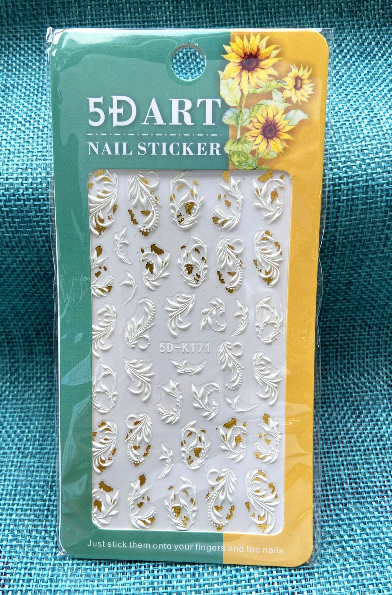 2022 네일 아트 새로운 입체 양각 궁전 스타일 레트로 퓨어 화이트 토템 골드 장식 5DK168-170 데칼