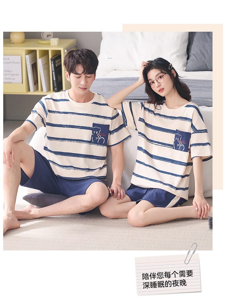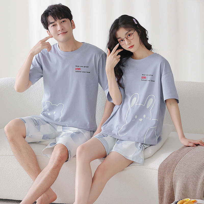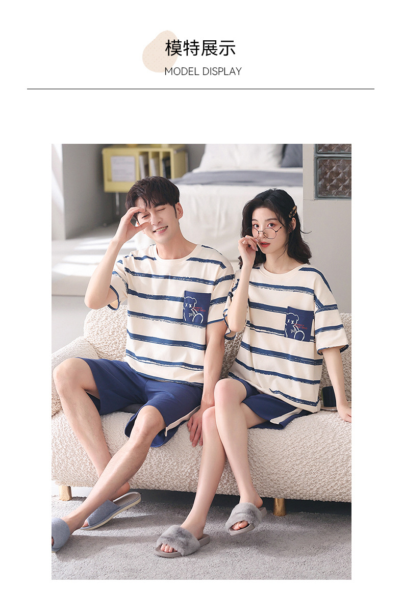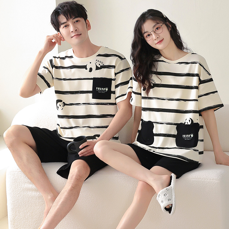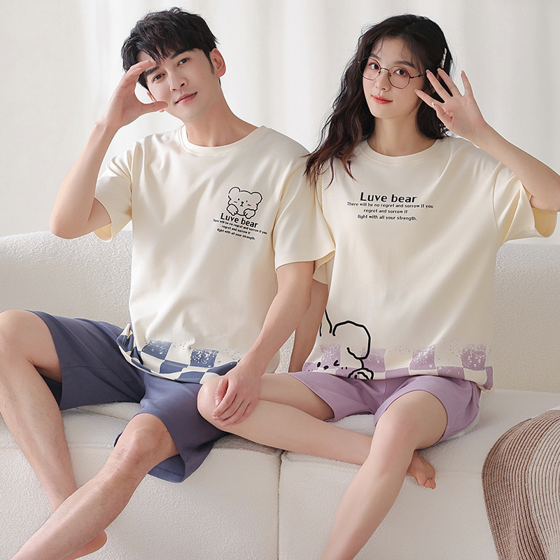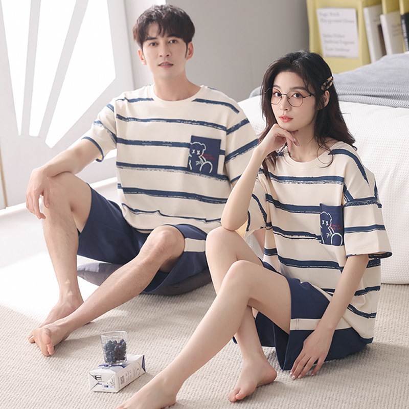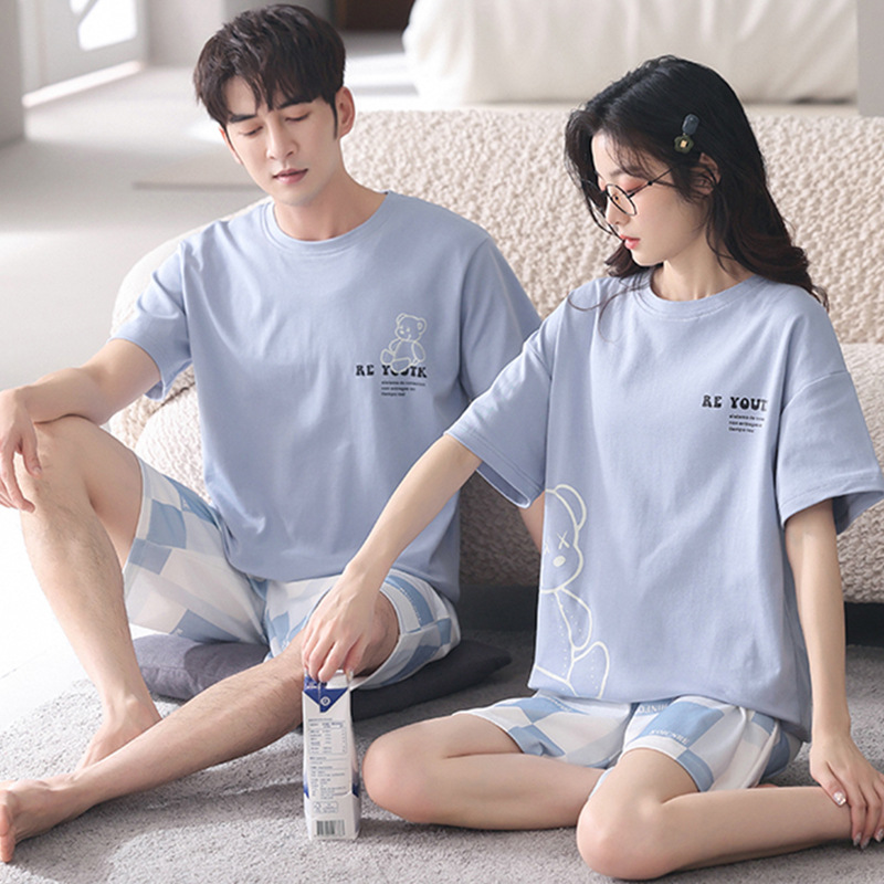 커플 잠옷 여름 면화 숙녀 새로운 반팔 반바지 남자의 가정 옷 면화는 세트 도매로 착용 할 수 있습니다스토어 가기