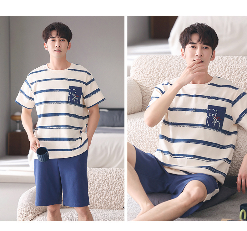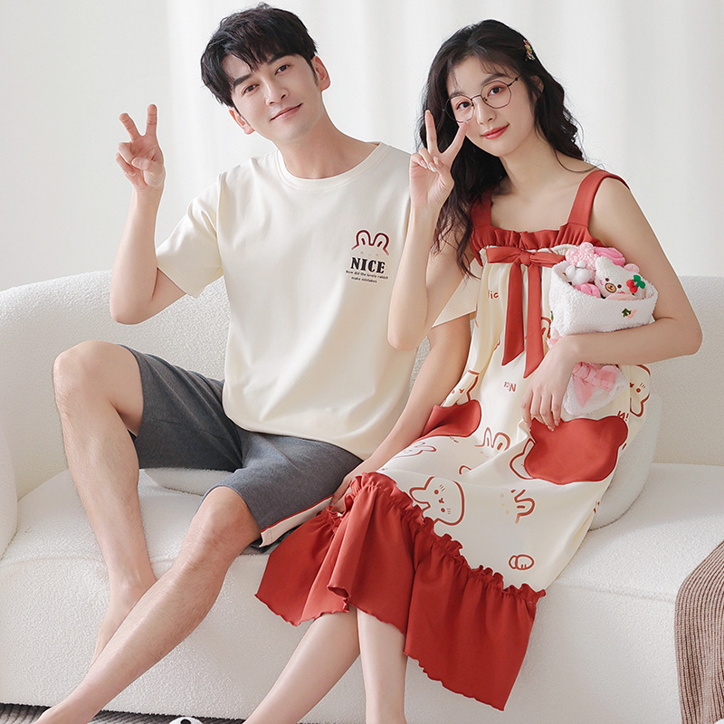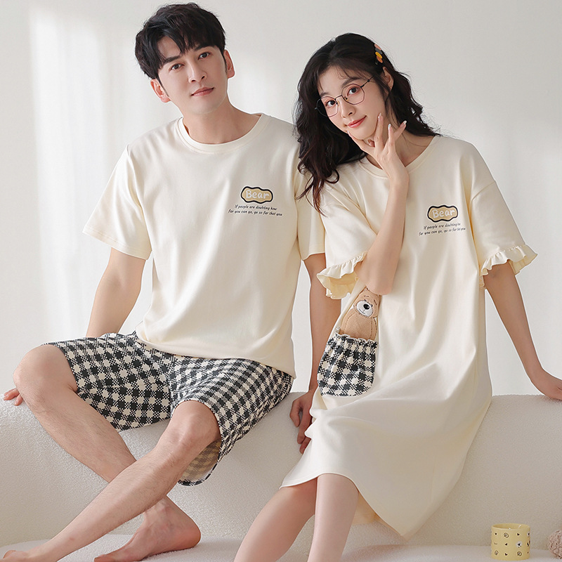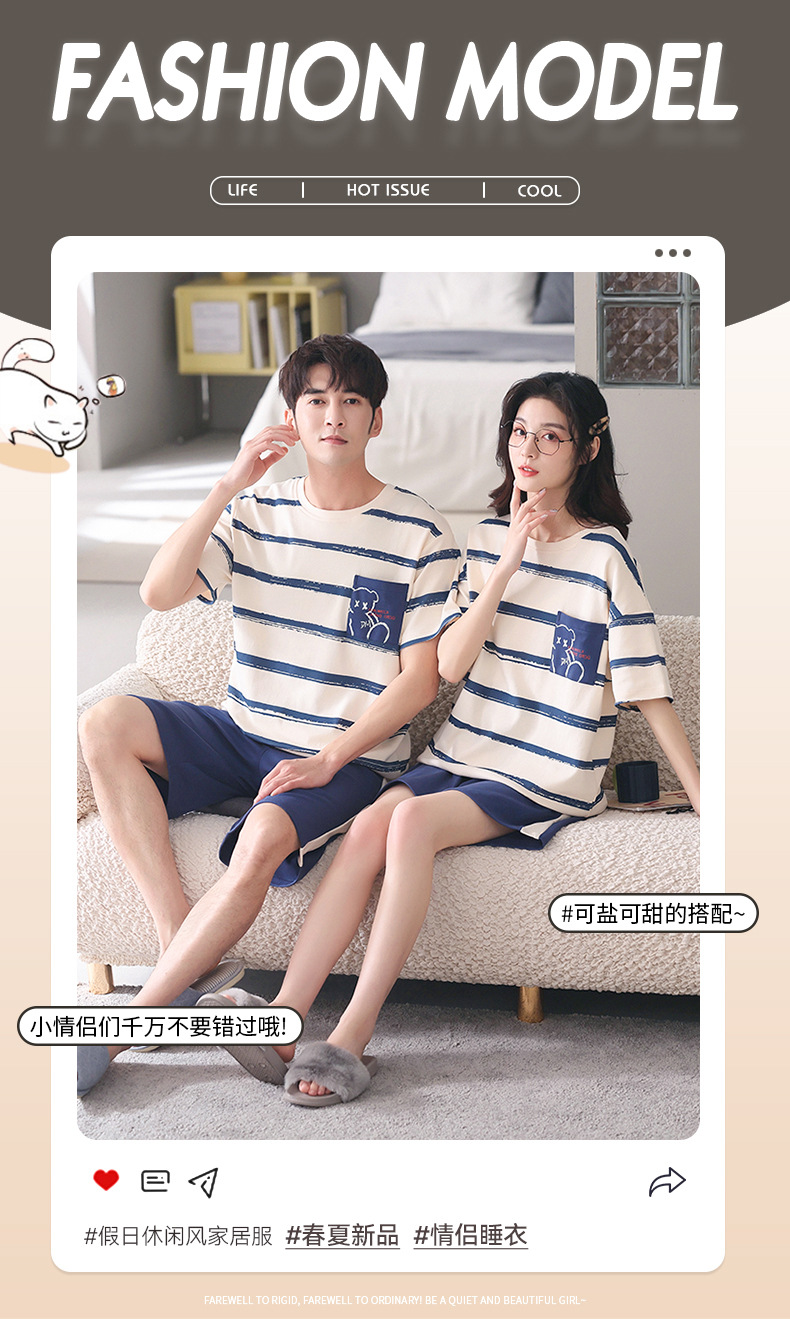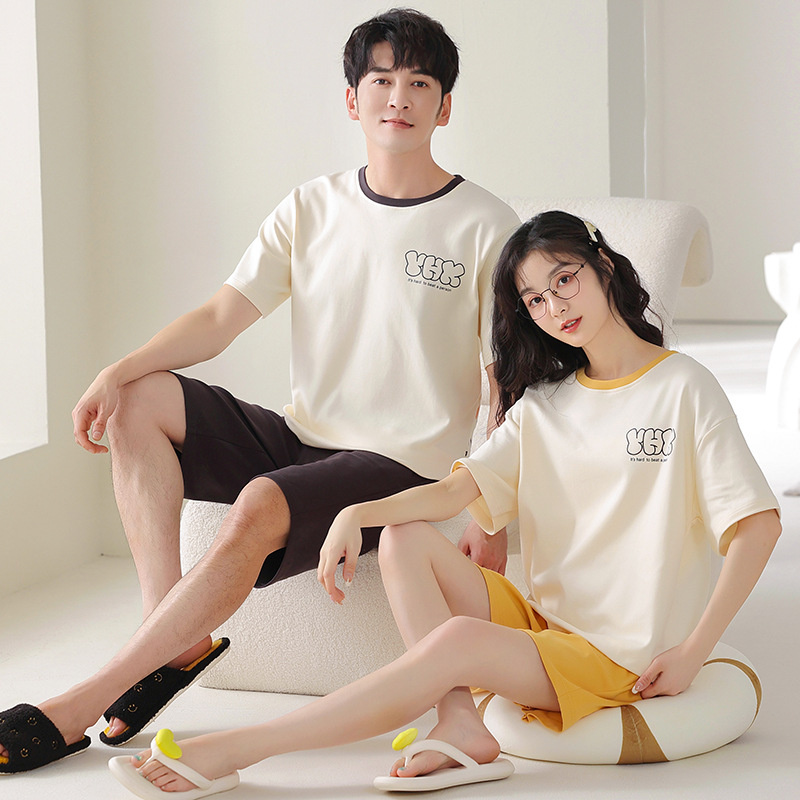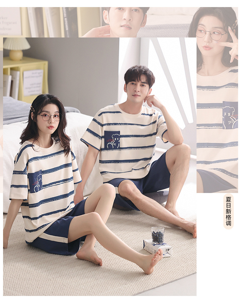 커플 잠옷 여름 면화 숙녀 새로운 반팔 반바지 남자의 가정 옷 면화는 세트 도매로 착용 할 수 있습니다스토어 가기