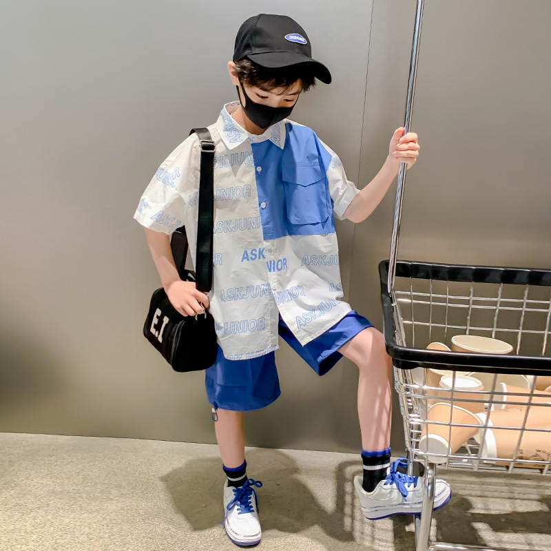 소년 정장 여름 얇은 2024 새로운 스타일 아동 셔츠 소년 잘 생긴 여름 정장 중대형 어린이 투피스 세트스토어 가기
