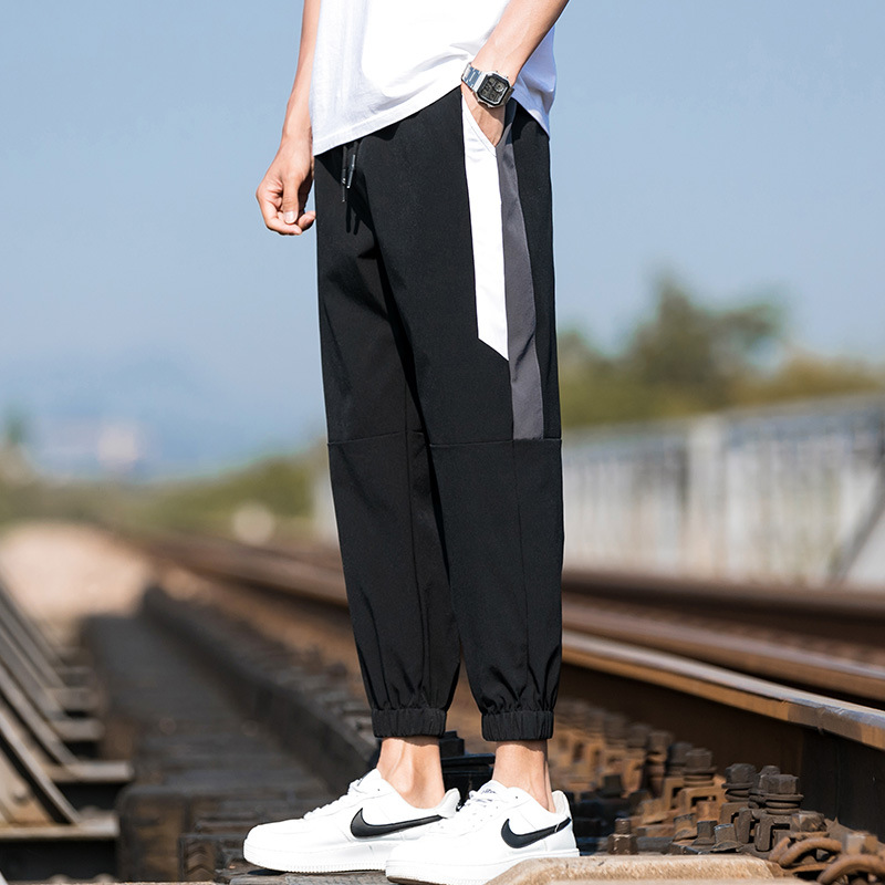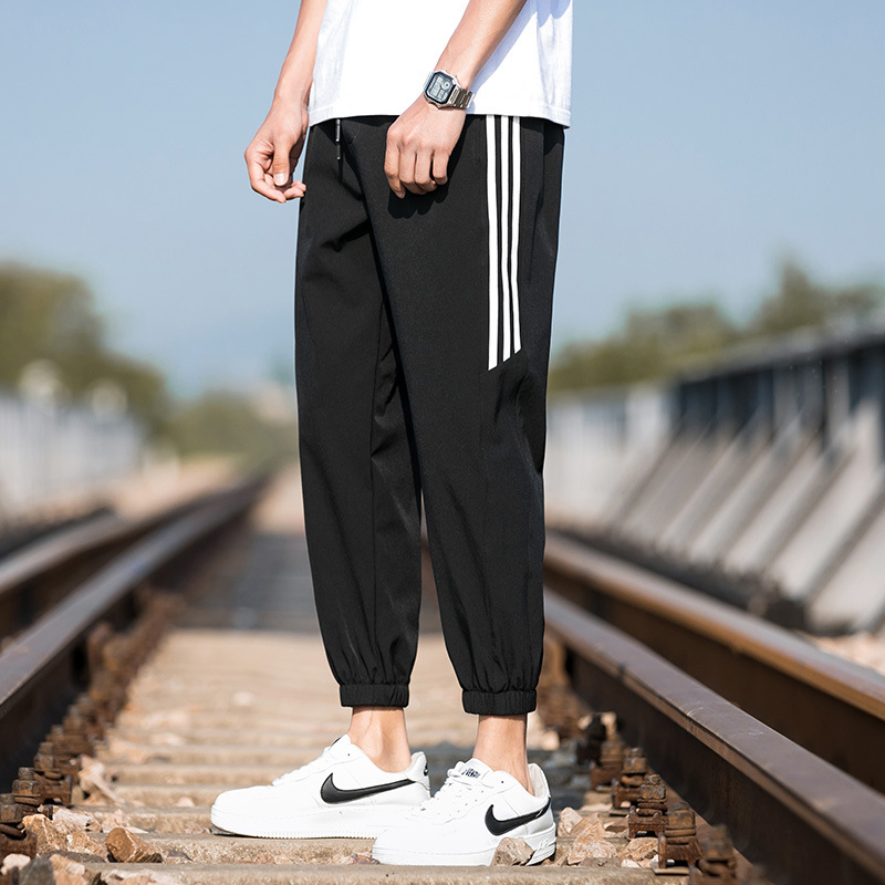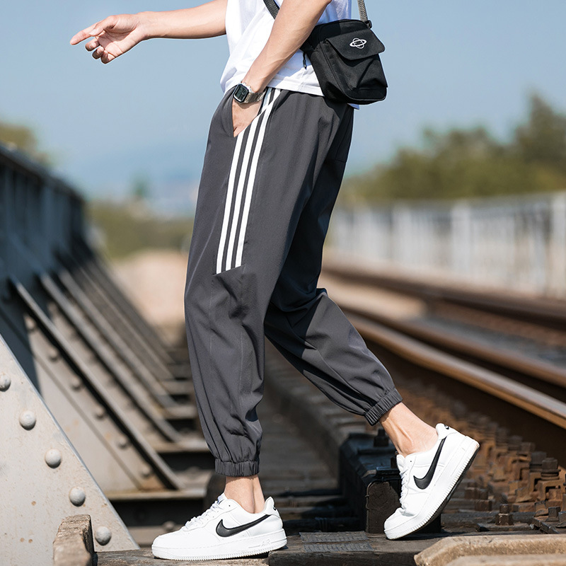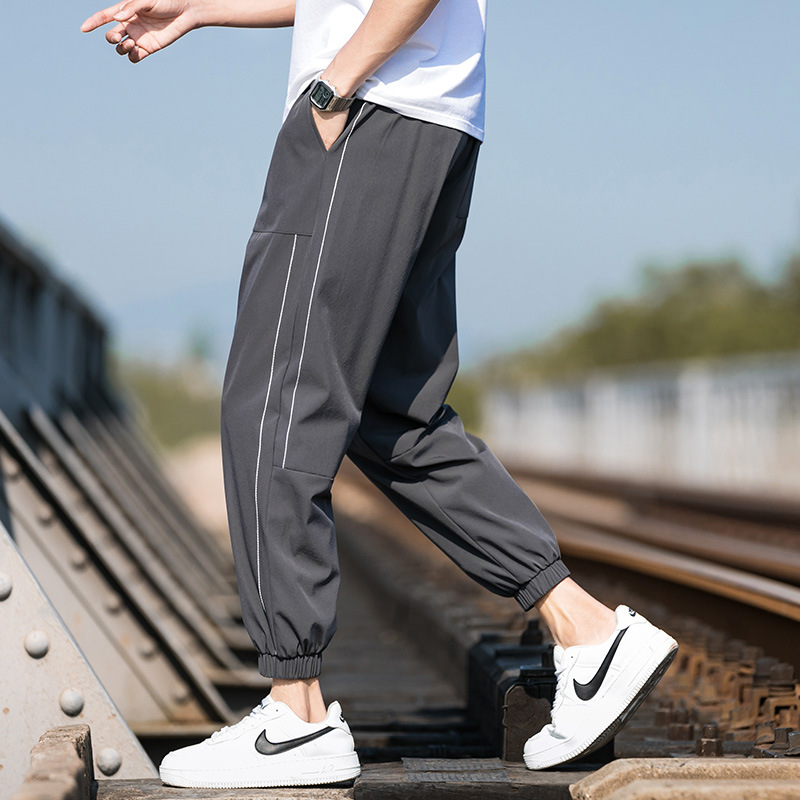 도매 캐주얼 바지 남성 여름 아이스 실크 크롭 팬츠 패션 브랜드 커플 스포츠 레깅스 청소년 올매치 팬츠 남성스토어 가기