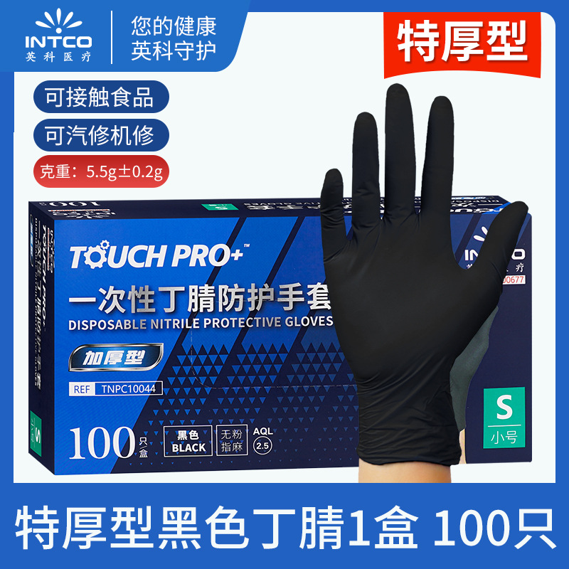 Yingke 일회용 장갑 블랙 니트릴 두껍고 튼튼한 식품 등급 특수 베이킹 가정용 미끄럼 방지 및 내유성 작업스토어 가기
