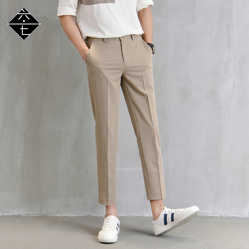 유러피언 스테이션 스몰 세트 팬츠 남성용 발목 길이 팬츠 스트레이트 튜브 슬림핏 스몰 풋 캐주얼 한국 스타일 캐주얼 펜던트 남성용 세트 팬츠