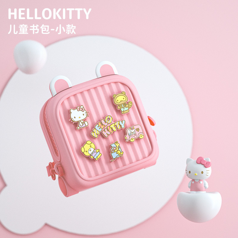 Hello kitty款背包 小号:零售限价79元大号:零售限价169元产品款式:双肩肩带长度:可调节产品材质:EVA+PVC产品颜色:粉色产品清单:手提挎包*1 包装盒*1小号:扣花数量:标配6个扣花产品尺寸:208*211*96MM包装尺寸:212*103*217mm 产品重量:330g产品毛量:430g箱规数量:40件 外箱尺寸:863*535*449mm 整箱重量:16.2kg大号:扣花数量:标配5个扣花+1个公仔肩带长度:可调节产品尺寸:292*178*285mm产品重量:约780g产品毛量:1.15kg包装尺寸:290*182*293mm 箱规数量:16件 外箱尺寸:740*600*601mm 整箱重量:19.6kg