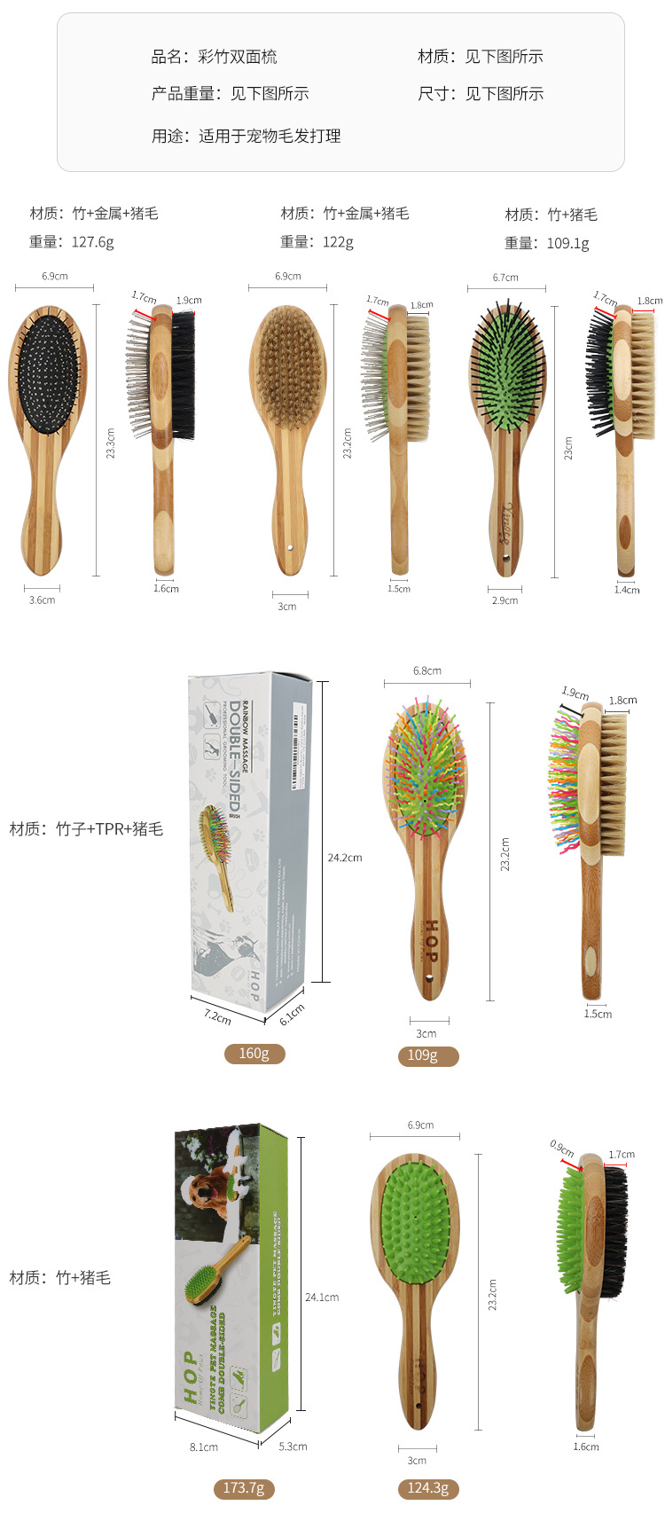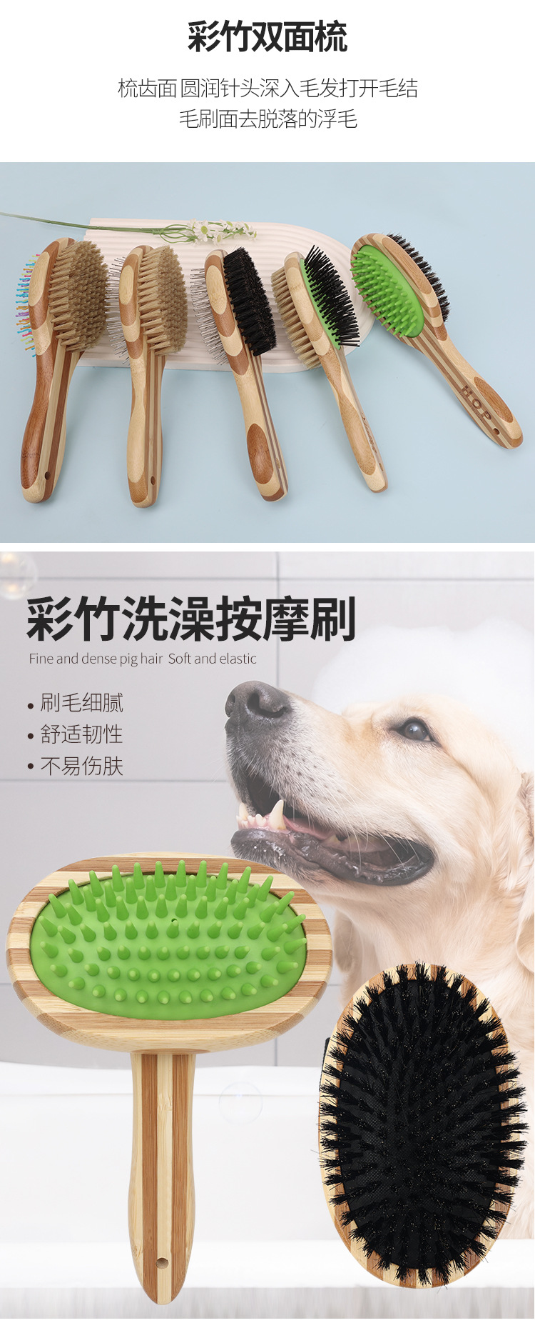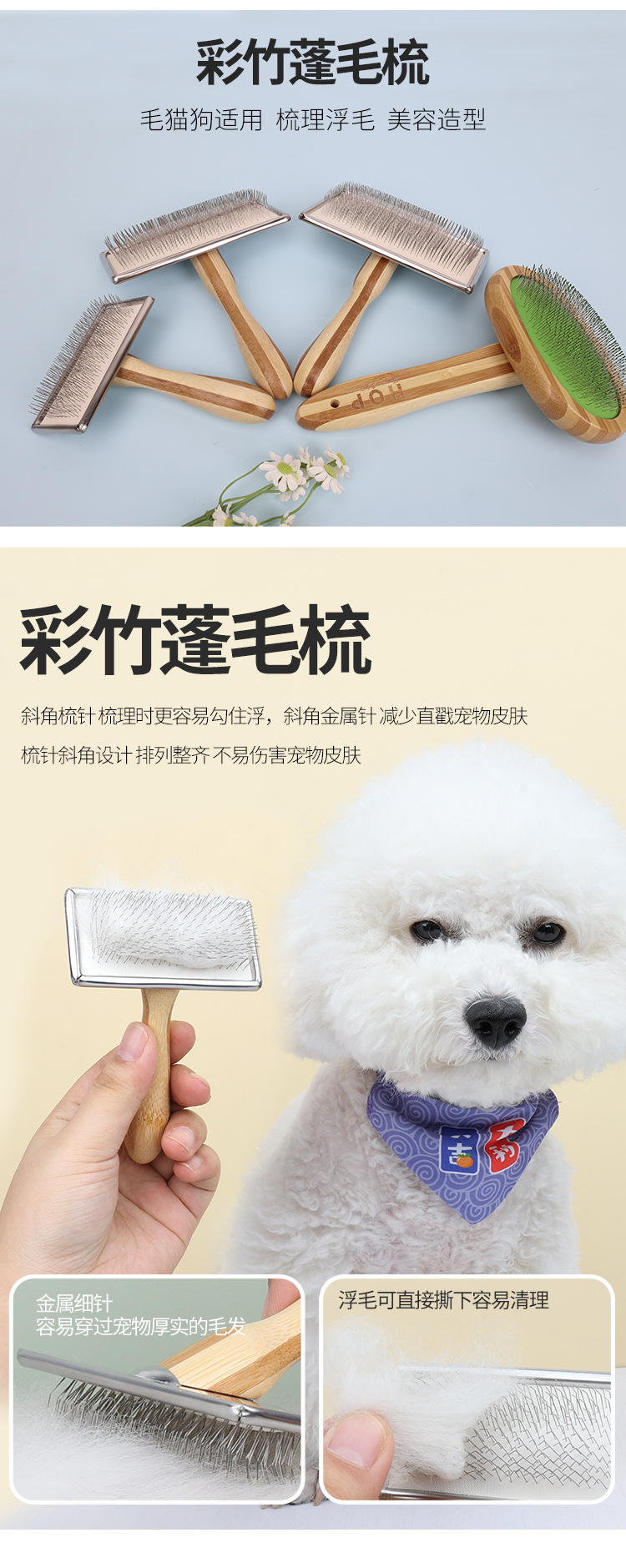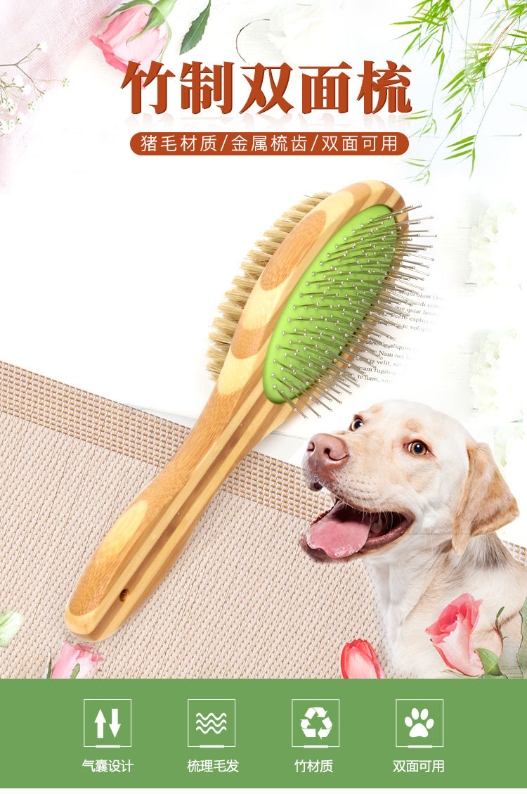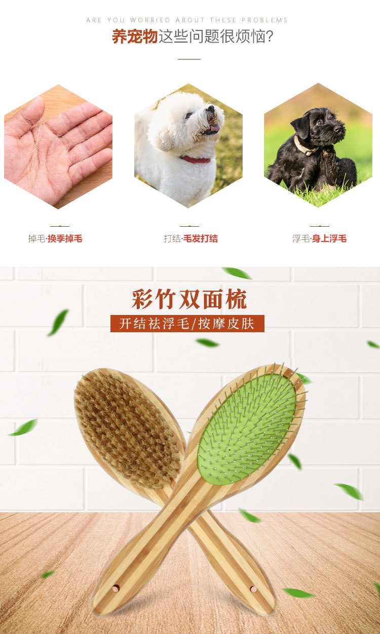 애완동물 빗, 컬러풀한 대나무 강아지 양면 미용 빗, 고양이 빗, 벼룩 빗, 엉킴 풀기 빗, 털 제거 브러쉬, 애완동물 용품스토어 가기