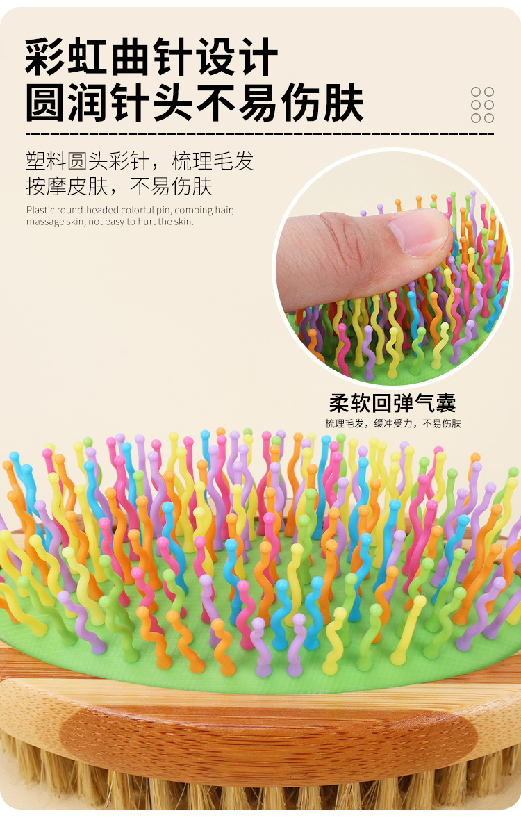 • 컬러 대나무 단면 흰색 돼지 머리 빗