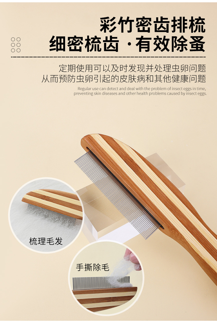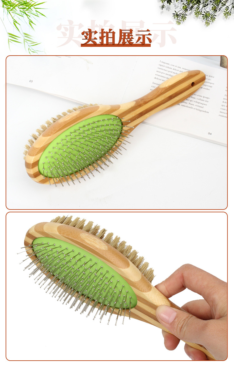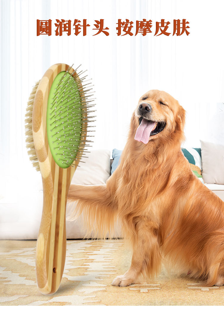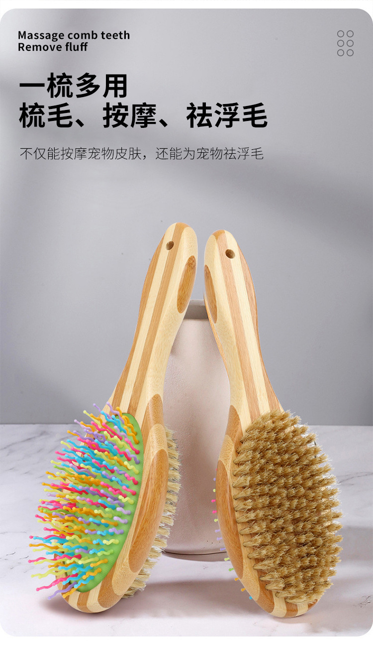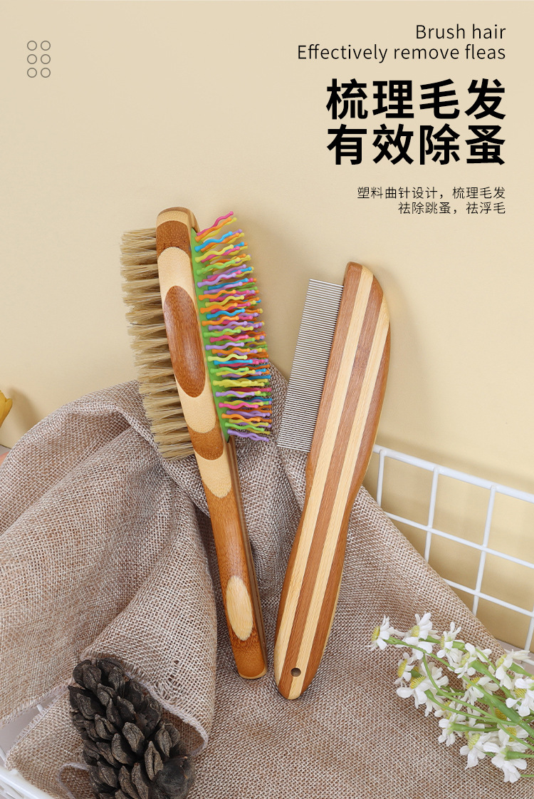애완동물 빗, 컬러풀한 대나무 강아지 양면 미용 빗, 고양이 빗, 벼룩 빗, 엉킴 풀기 빗, 털 제거 브러쉬, 애완동물 용품