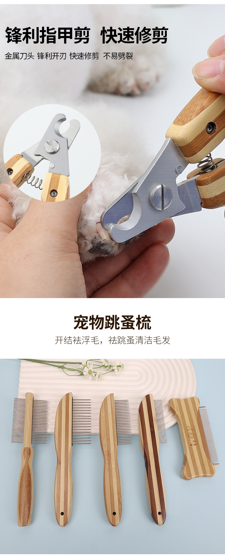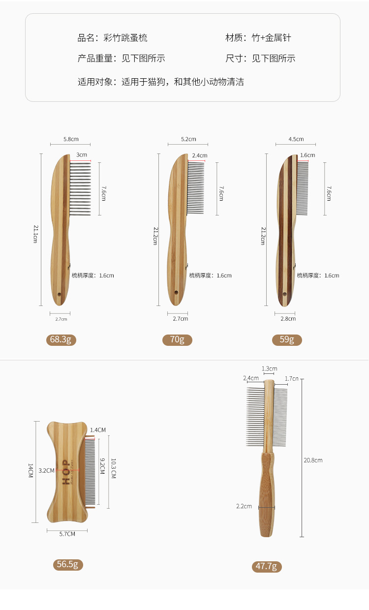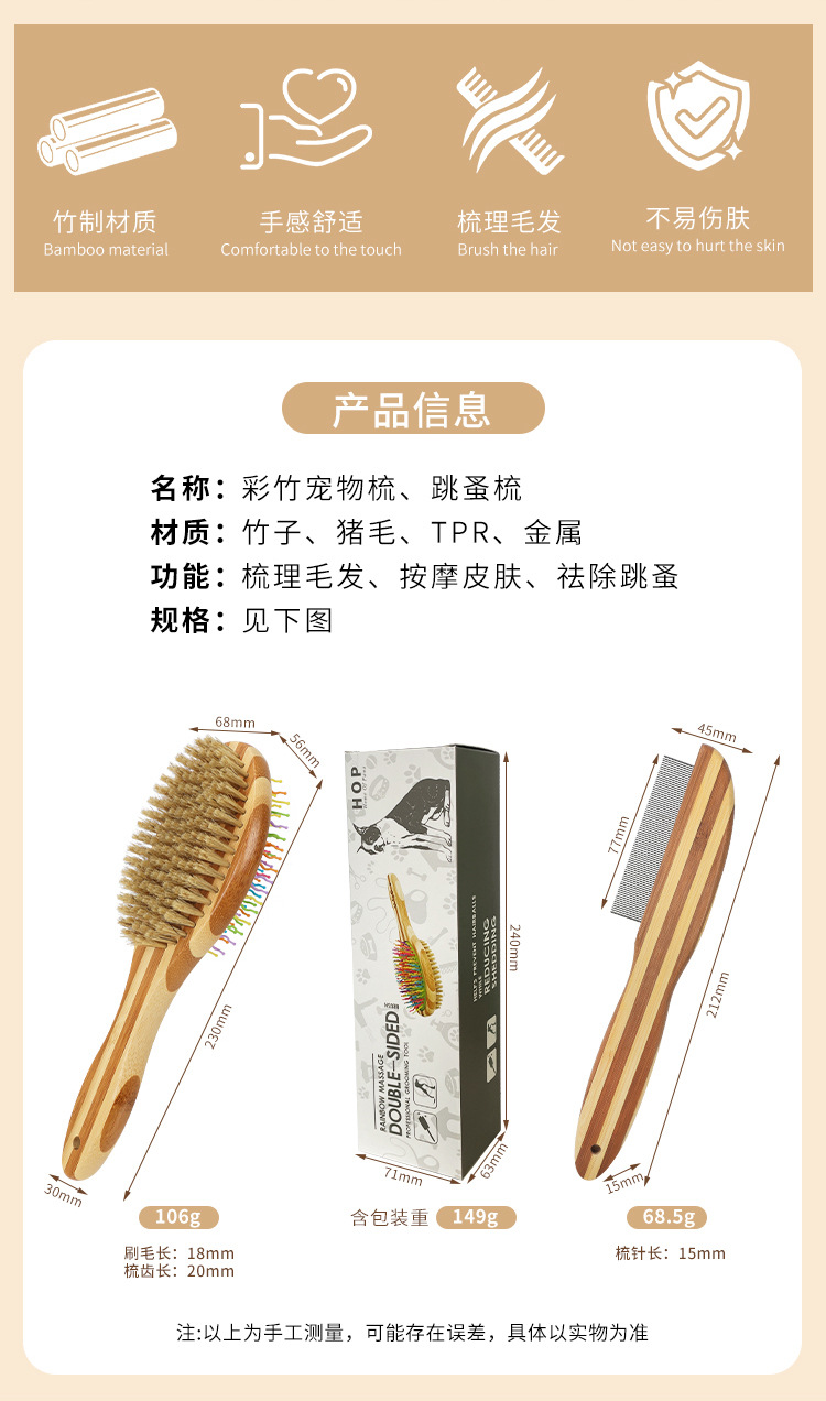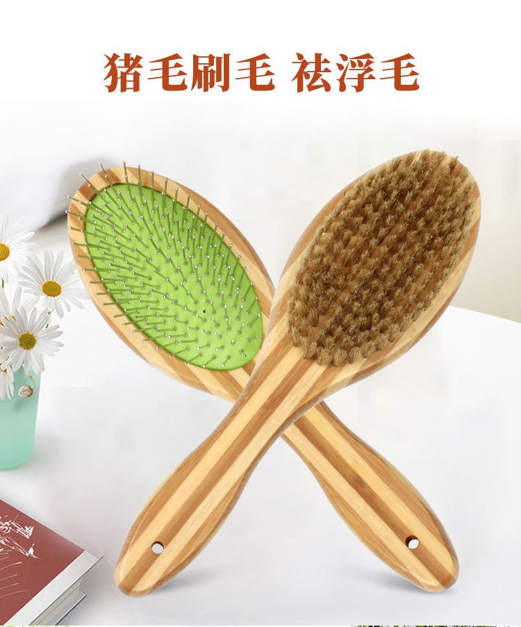 애완동물 빗, 컬러풀한 대나무 강아지 양면 미용 빗, 고양이 빗, 벼룩 빗, 엉킴 풀기 빗, 털 제거 브러쉬, 애완동물 용품