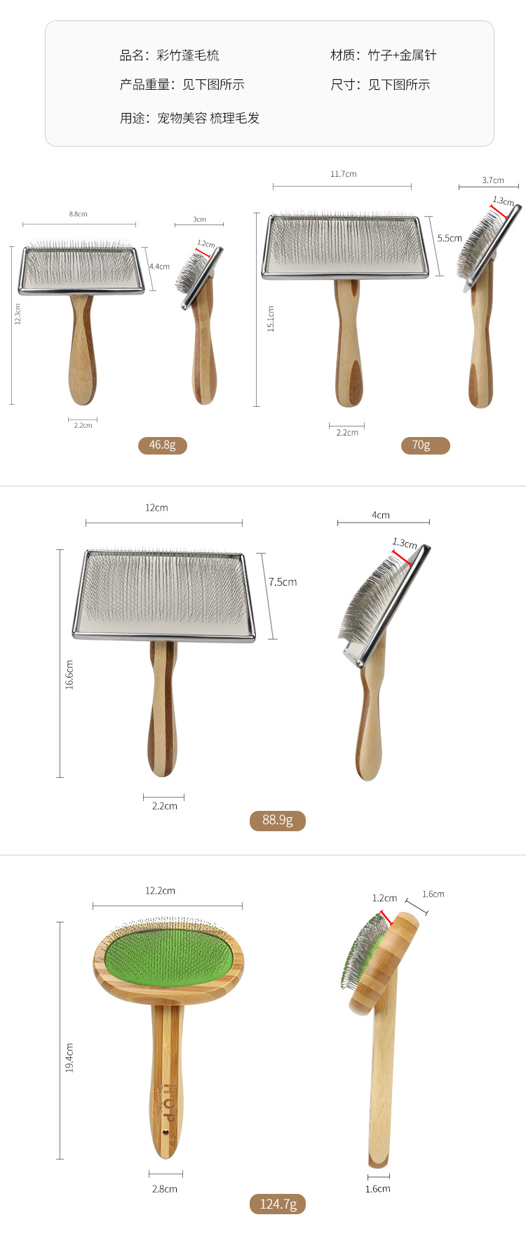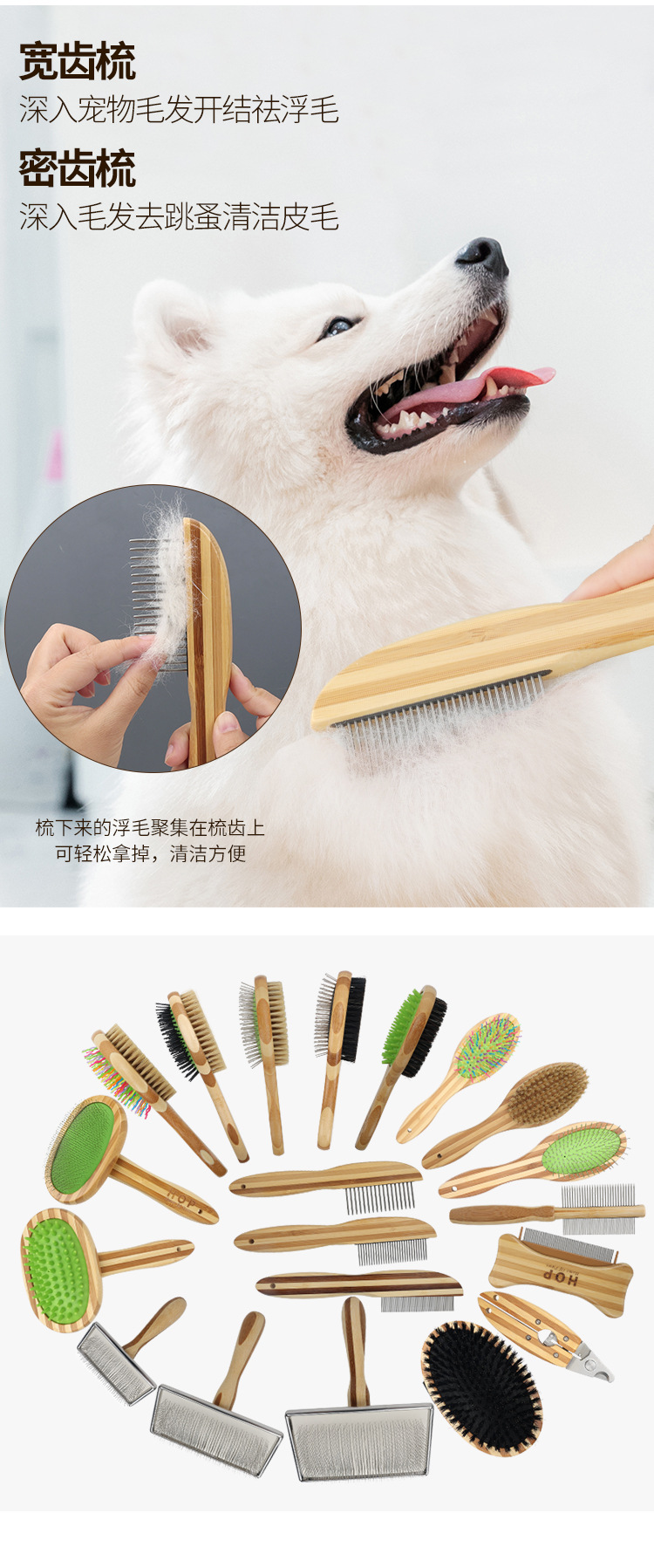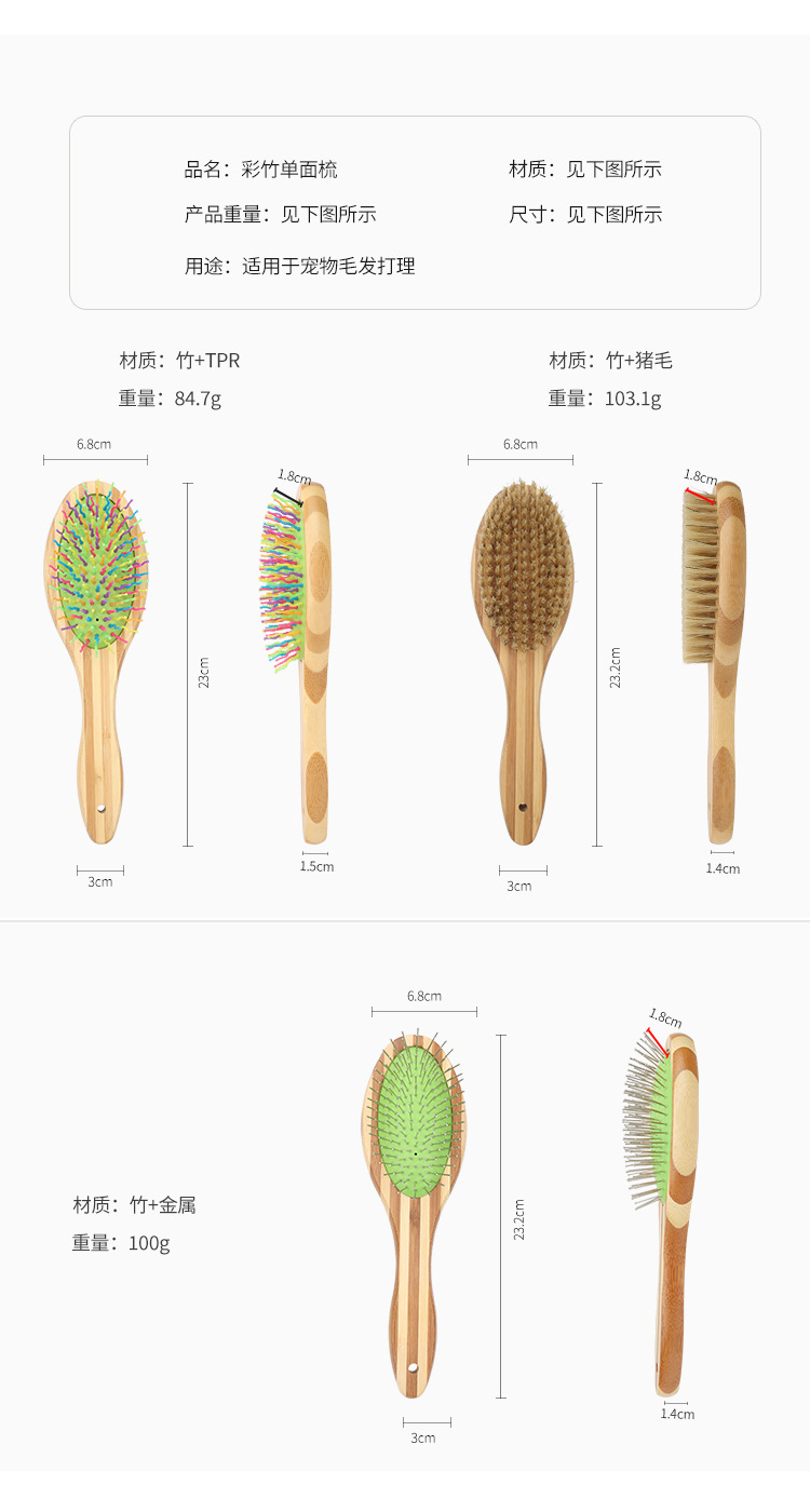 • C 컬러 대나무 고밀도 치아 애완 동물 행 빗