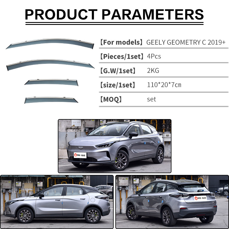 • Geely 기하학 C [MK1 2019 +] PC 스테인레스 스틸 밝은 스트립 창 레인 실드