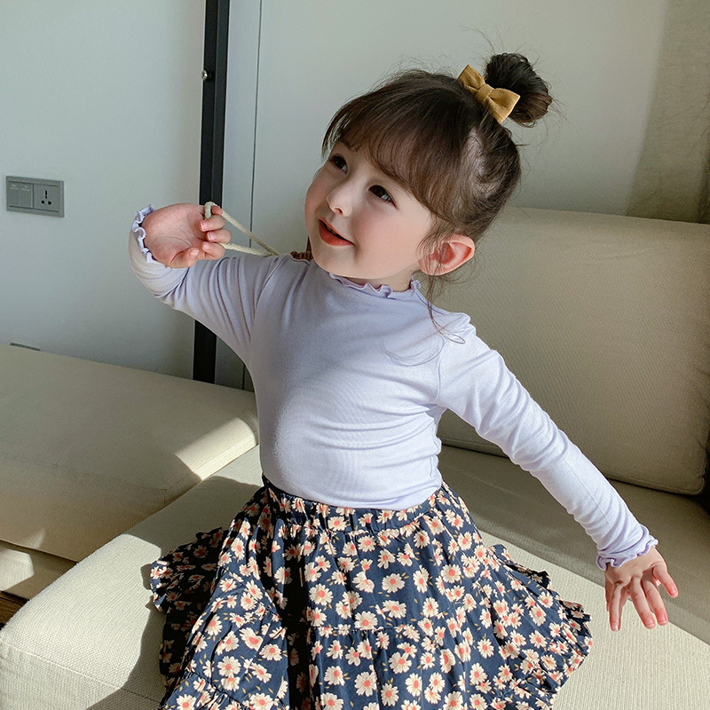 2024 여아 봄 신작 한국식 순면 긴팔 아동 티셔츠 베이비 스타일 봄, 가을 바닥 셔츠