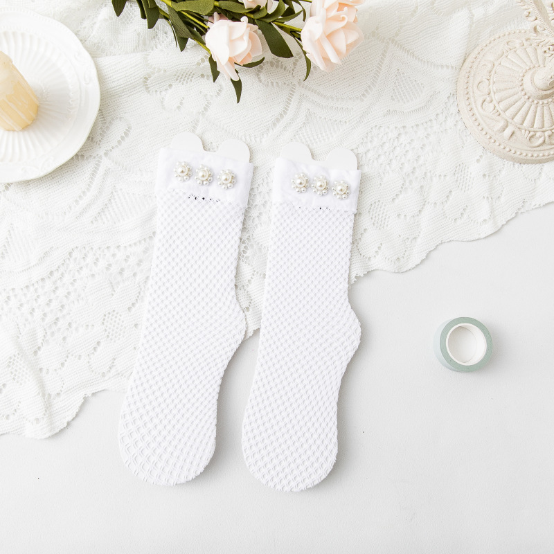 여아 양말 로리타 여름 얇은 아동용 진주망사 롱 양말 베이비 공주 중간길이 양말 25년 신상