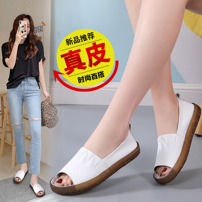 크로스 보더 폭발 모든 매치 천연 가죽 여성 샌들 2023 여름 새로운 쇠고기 힘줄 플랫 슬리퍼 부드러운 단독 싱글 레이어 신발스토어 가기