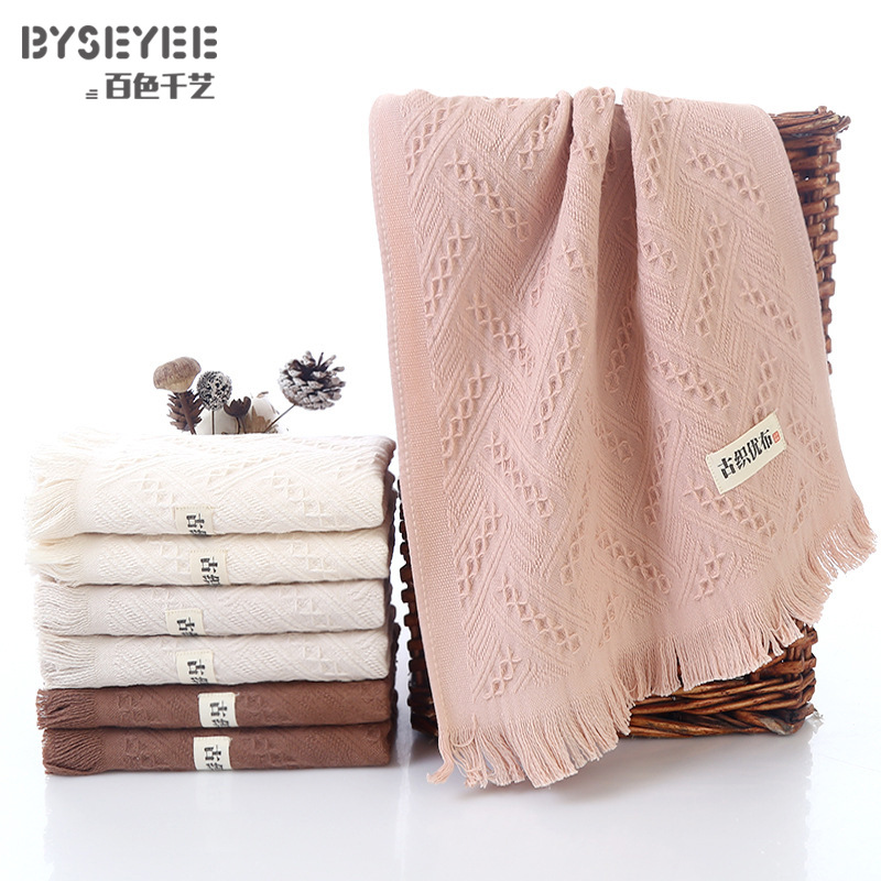 百色千艺毛巾纯棉提花流苏毛巾 厂家批发柔软吸水简约变形计毛巾